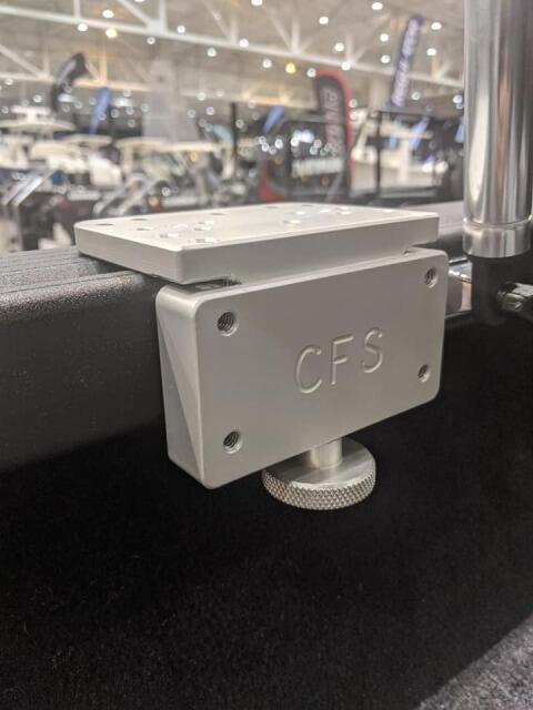 By capturing the underside and top of the gunnel with our machined bracket we are able to attach these brackets to the Voyager, Escape, Competitor, Classic and Trophy models. This bracket comes with pre-drilled 1/4-20 holes that will attach our double/triple/quad cross plates to them as well as our various downrigger adapter plates. Cisco, Scotty, Cabela and Folbe rod mounts will also mate with the hole patterns included on the mount. These mounts can also be bridged with a our Sure-Stop Tracks to securley mount downriggers and vertical trees without flexing the gunnel.
