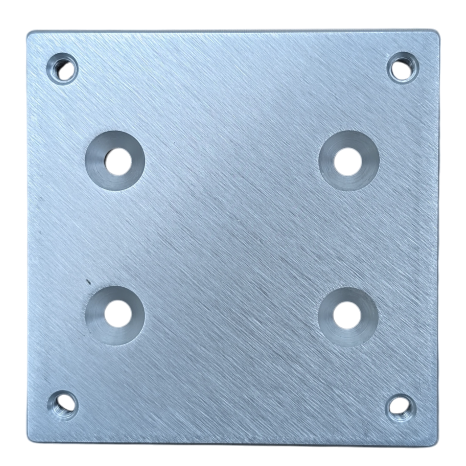 This 4" x 4" mounting plate will serve as an adapter for any Big Jon downrigger or Rod Holder equipped with a stationary or swivel base. The holes are all 1/4-20 threaded, with the exception of the interior countersunk holes. The hole pattern for the threaded holes are 3-1/4" apart.