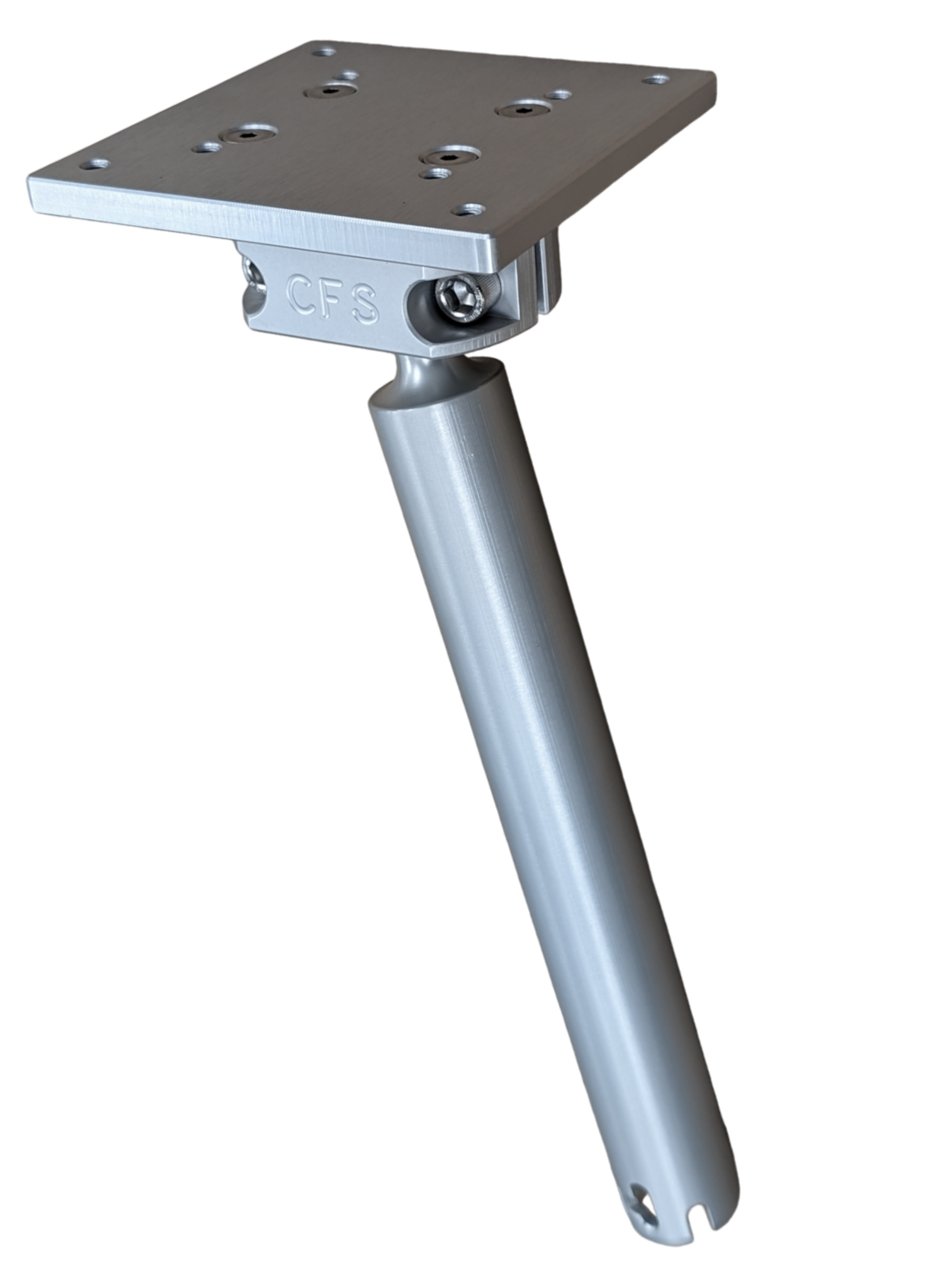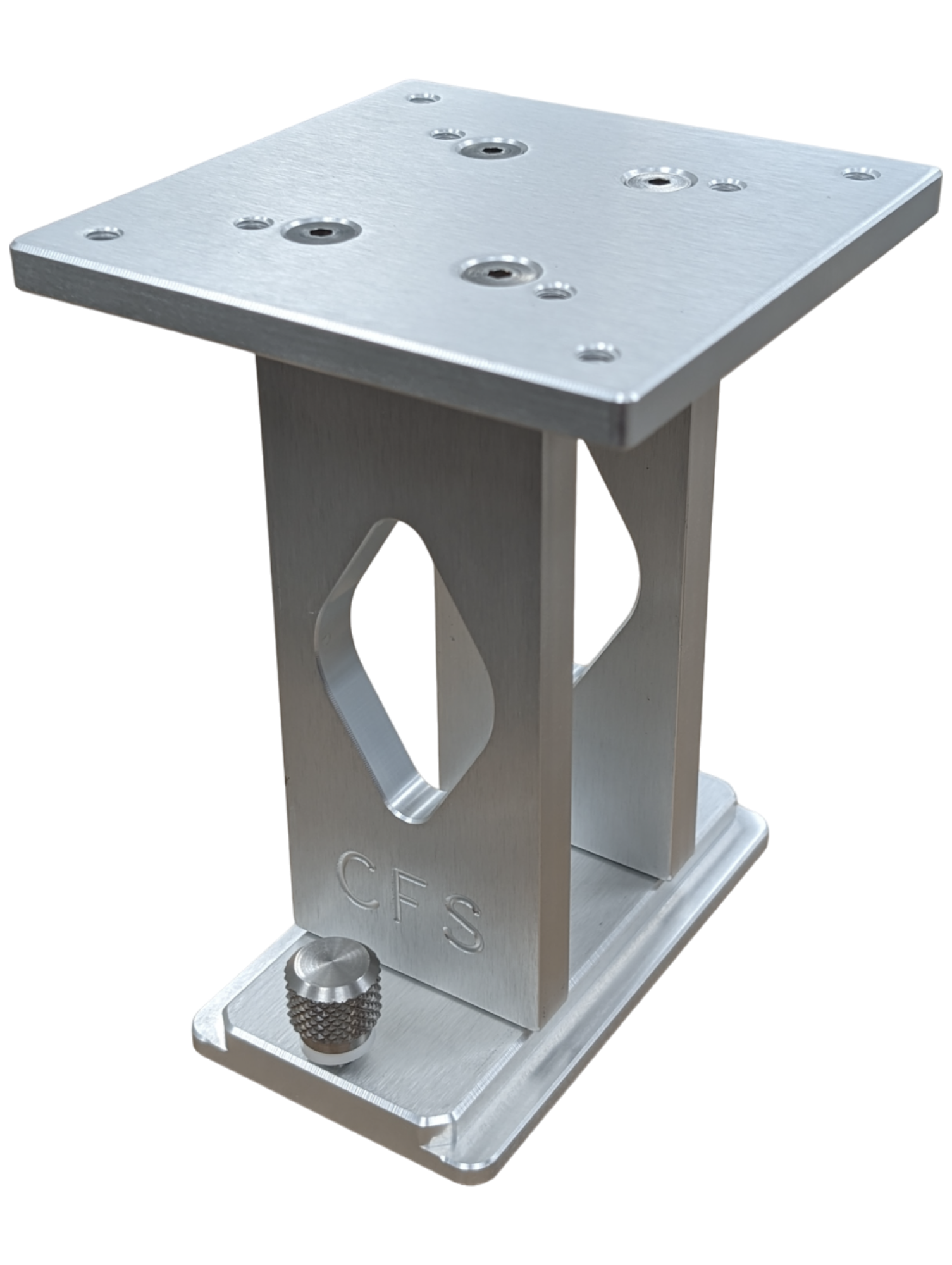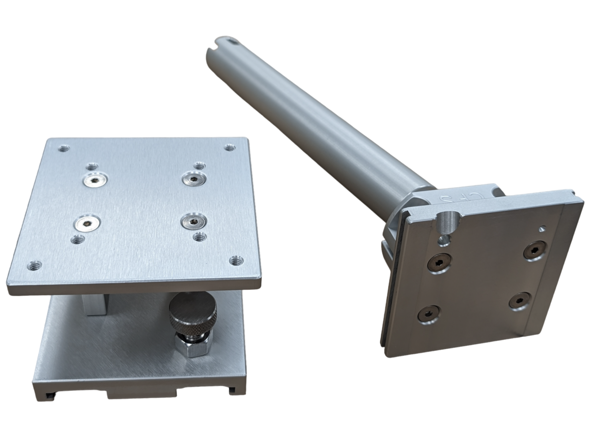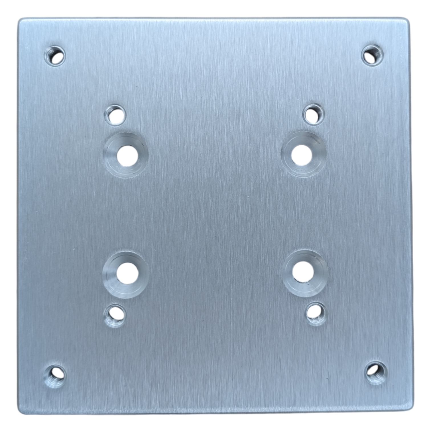 This 5" x 5" mounting plate will serve as an adapter for any Cannon downrigger equipped with a stationary or swivel base. The holes are all 1/4-20 threaded, with the exception of the interior countersunk holes.