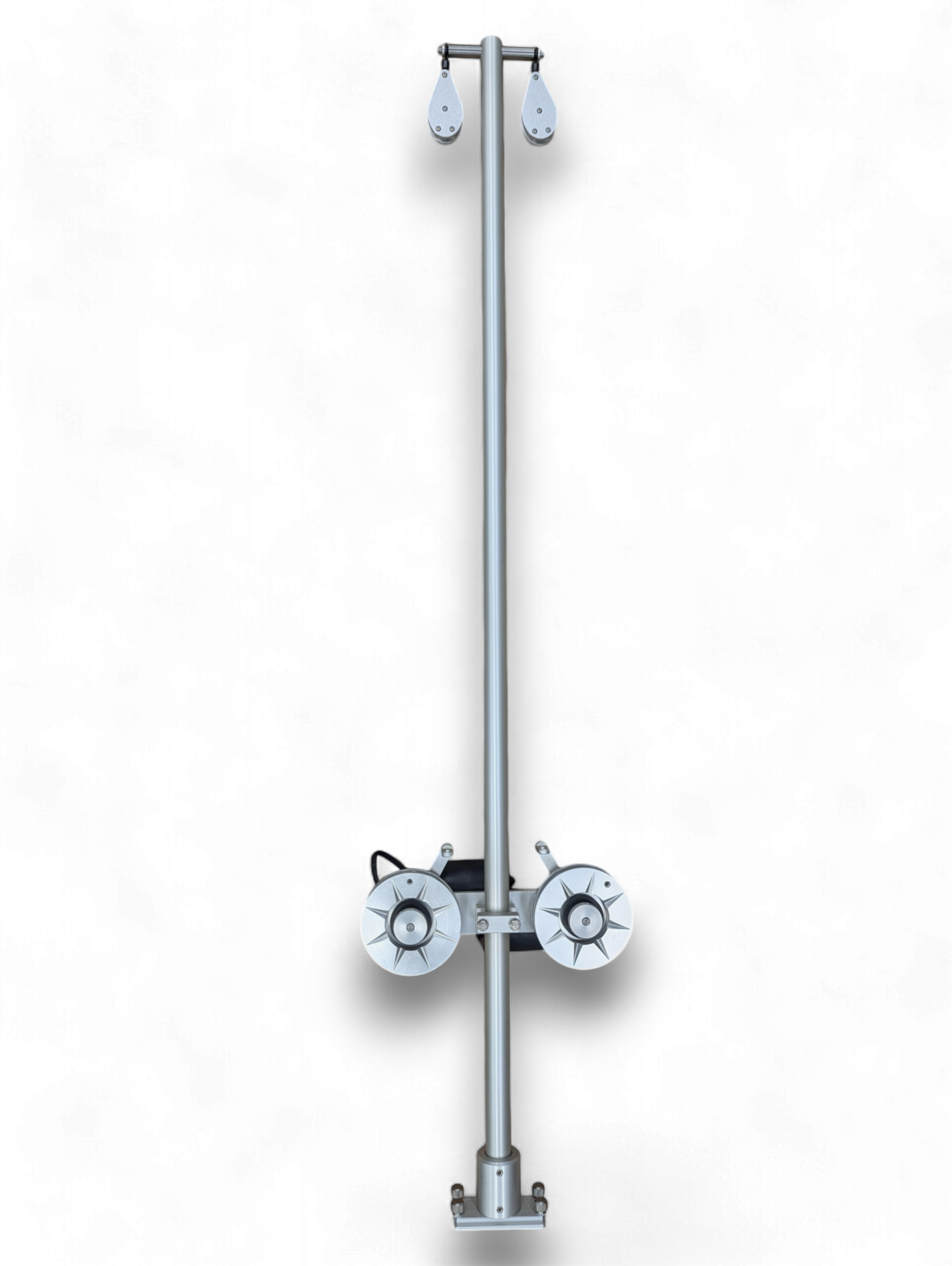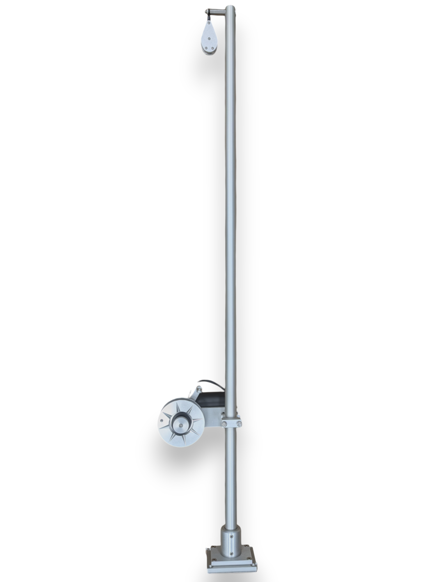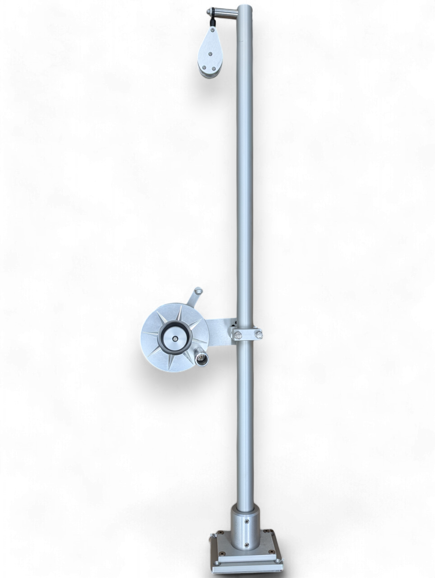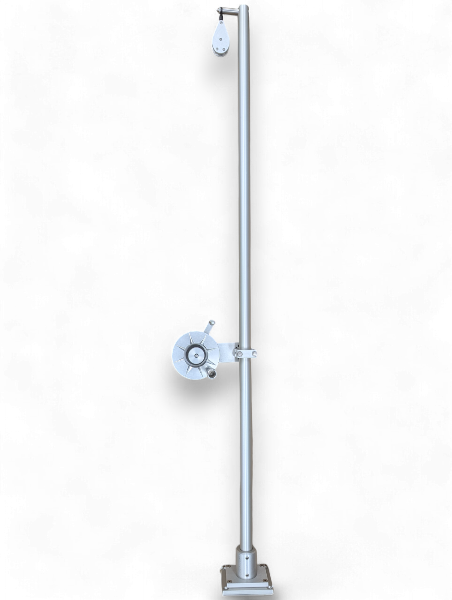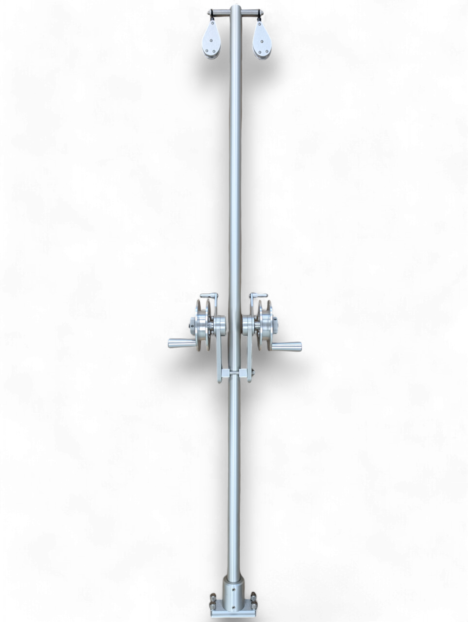 The masts with a Break-Away option are designed to be split in half to clear obstacles like bridges, garages, and electrical lines. The two halves are joined together by a machined aluminum collar and locked in place by custom knurled thumbscrews. The thumbscrews lock into indentations machined into the mast to ensure the material always fits securely together, with no material galling. An additional mounting base is also provided to store the mast vertically next to the other half of the mast to your planer mast lines do not need to be unspooled each time.