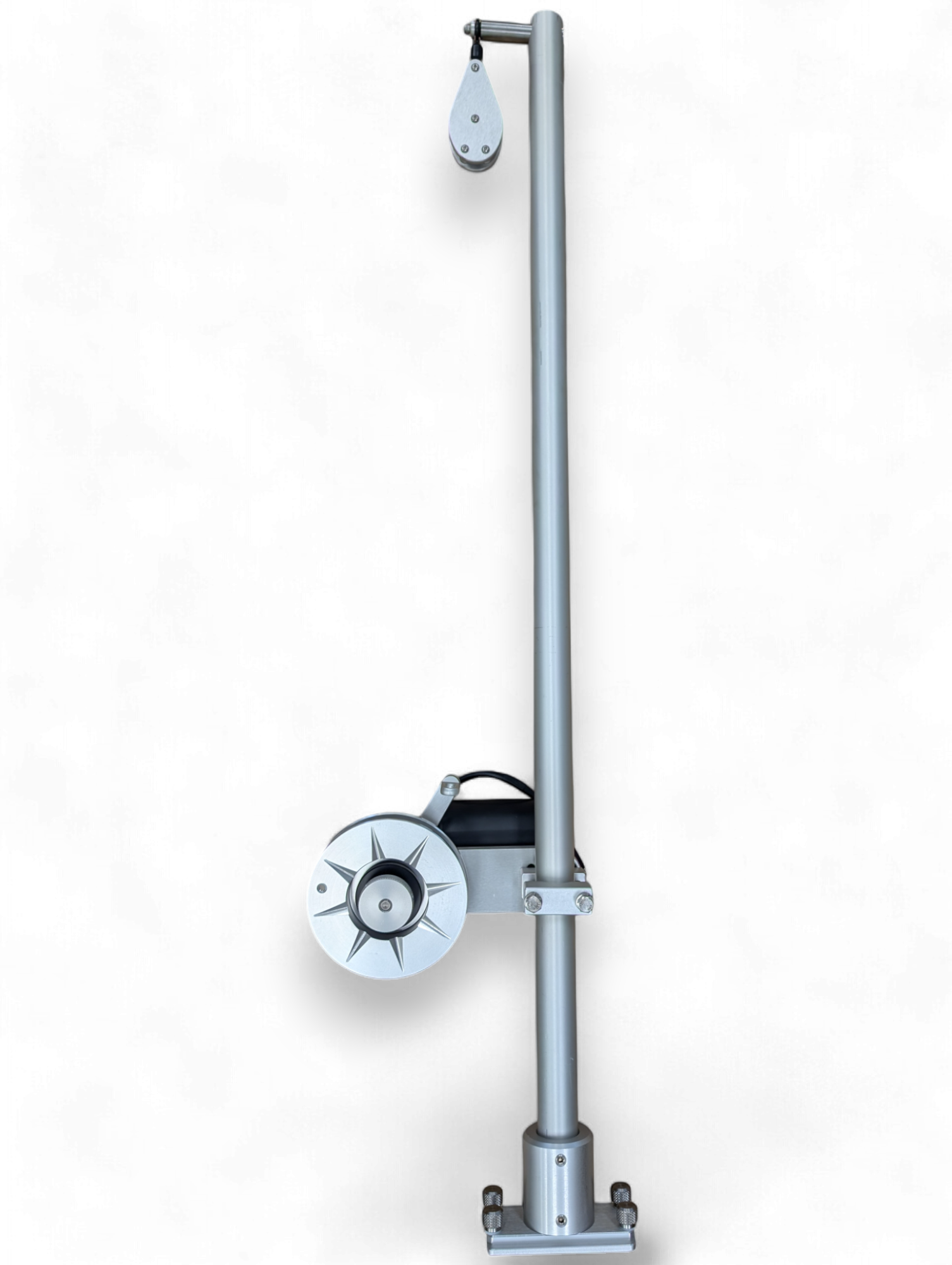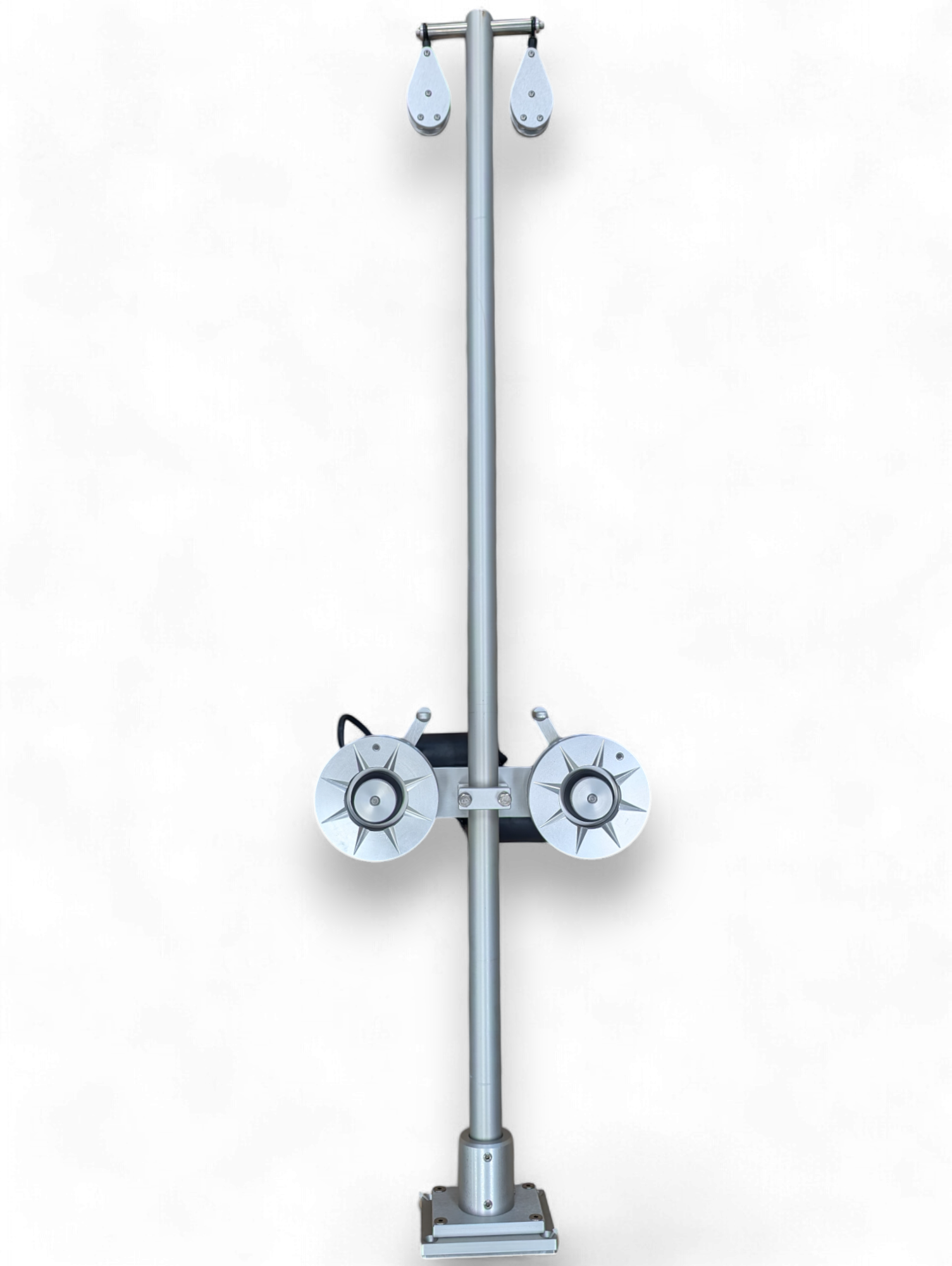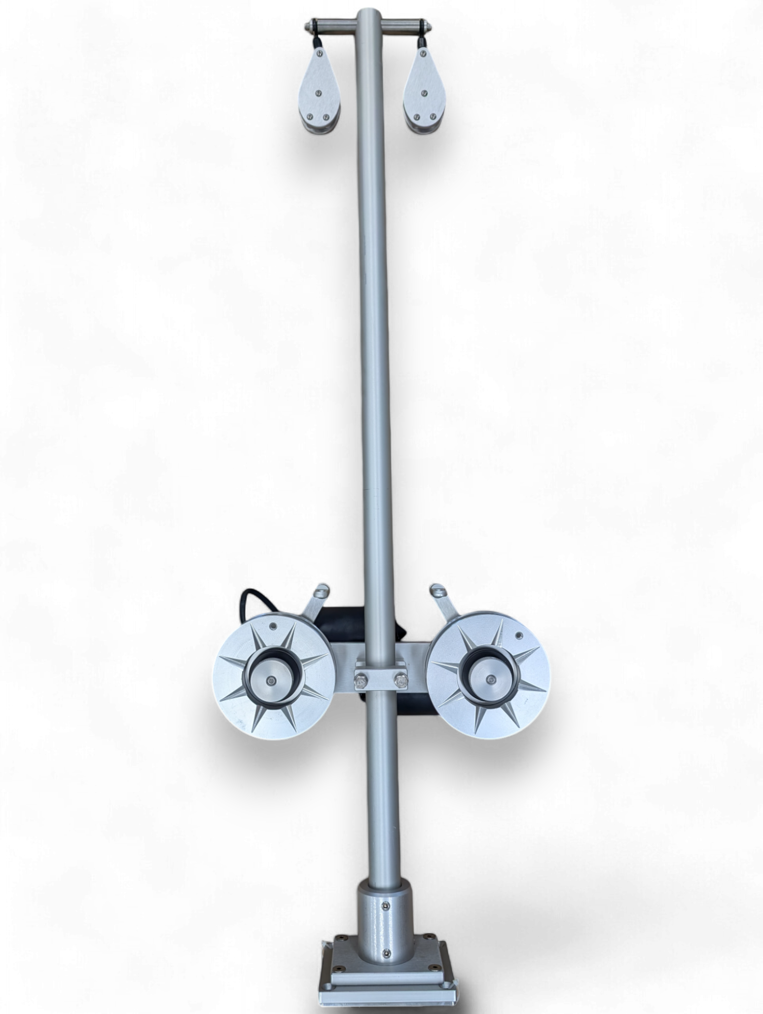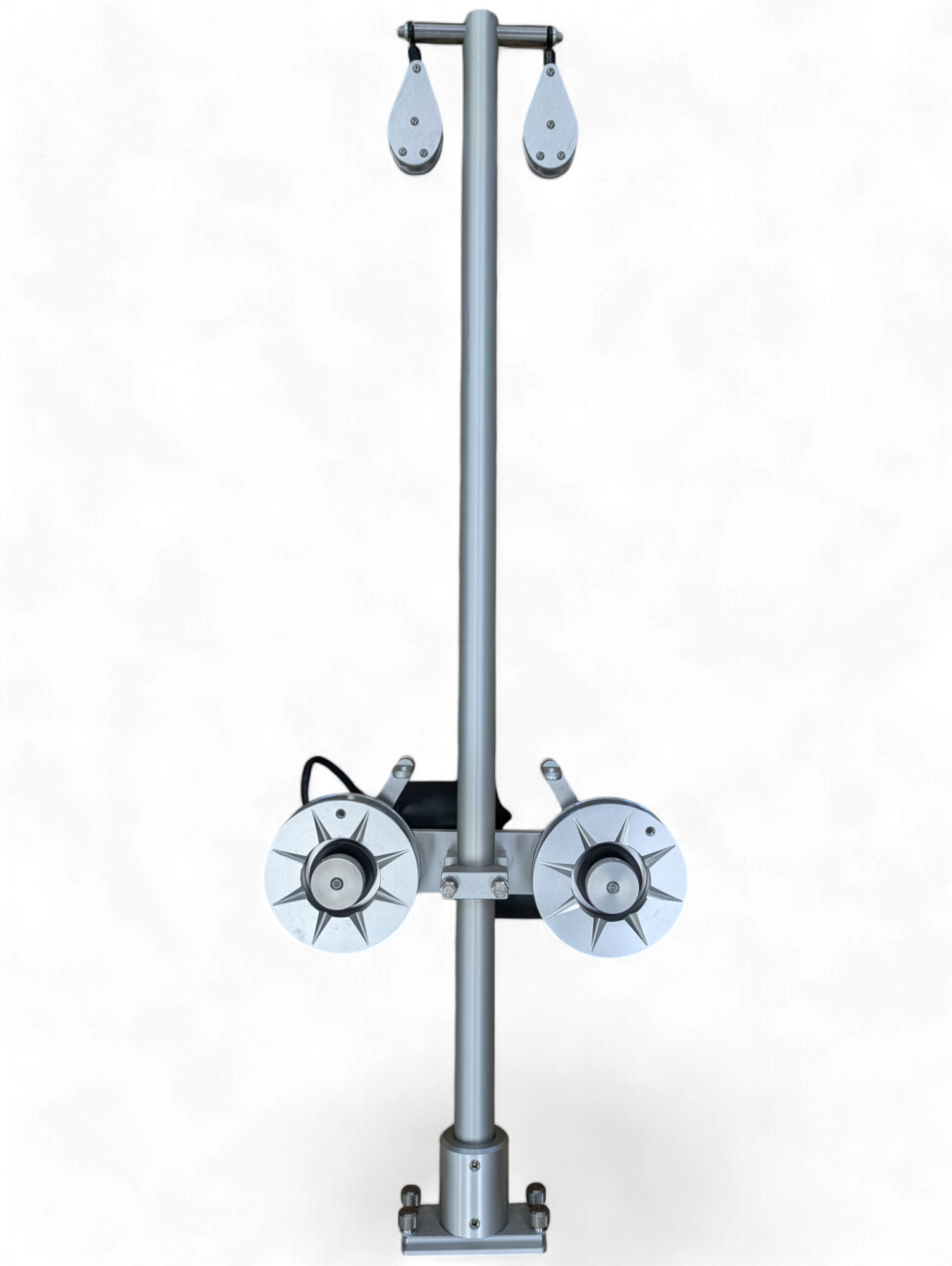 The masts with a Break-Away option are designed to be split in half to clear obstacles like bridges, garages, and electrical lines. The two halves are joined together by a machined aluminum collar and locked in place by custom knurled thumbscrews. The thumbscrews lock into indentations machined into the mast to ensure the material always fits securely together, with no material galling. An additional mounting base is also provided to store the mast vertically next to the other half of the mast to your planer mast lines do not need to be unspooled each time.
