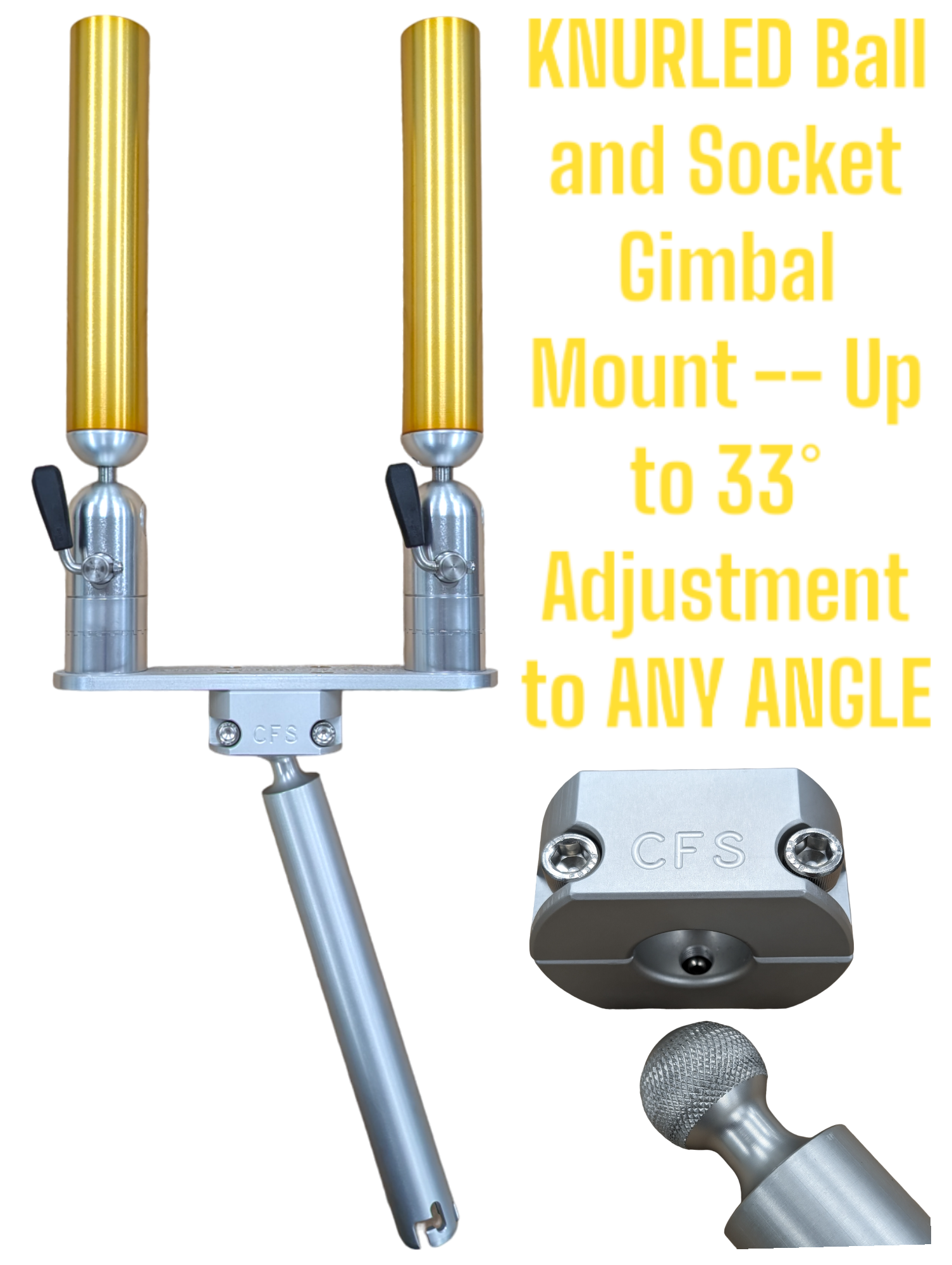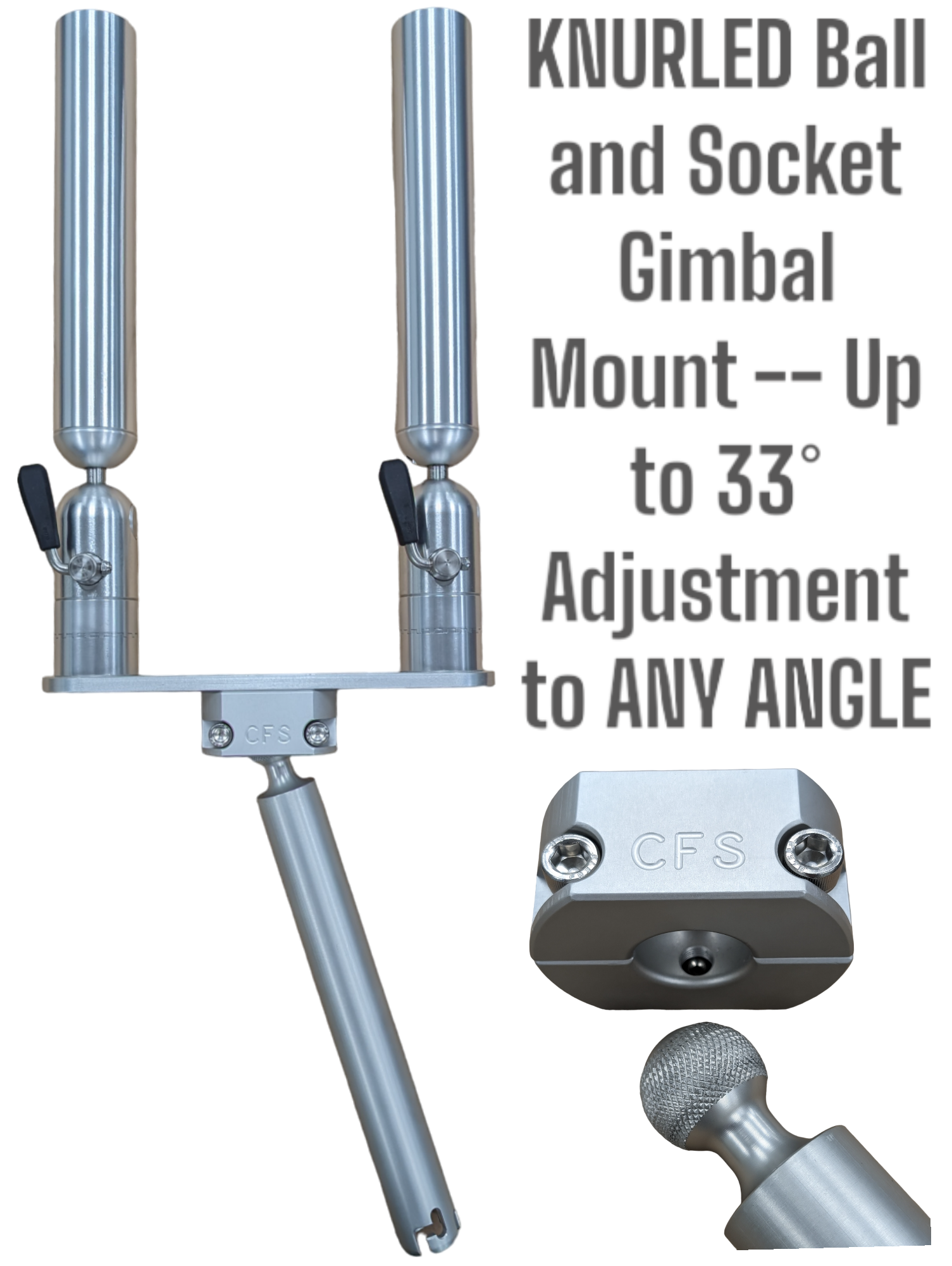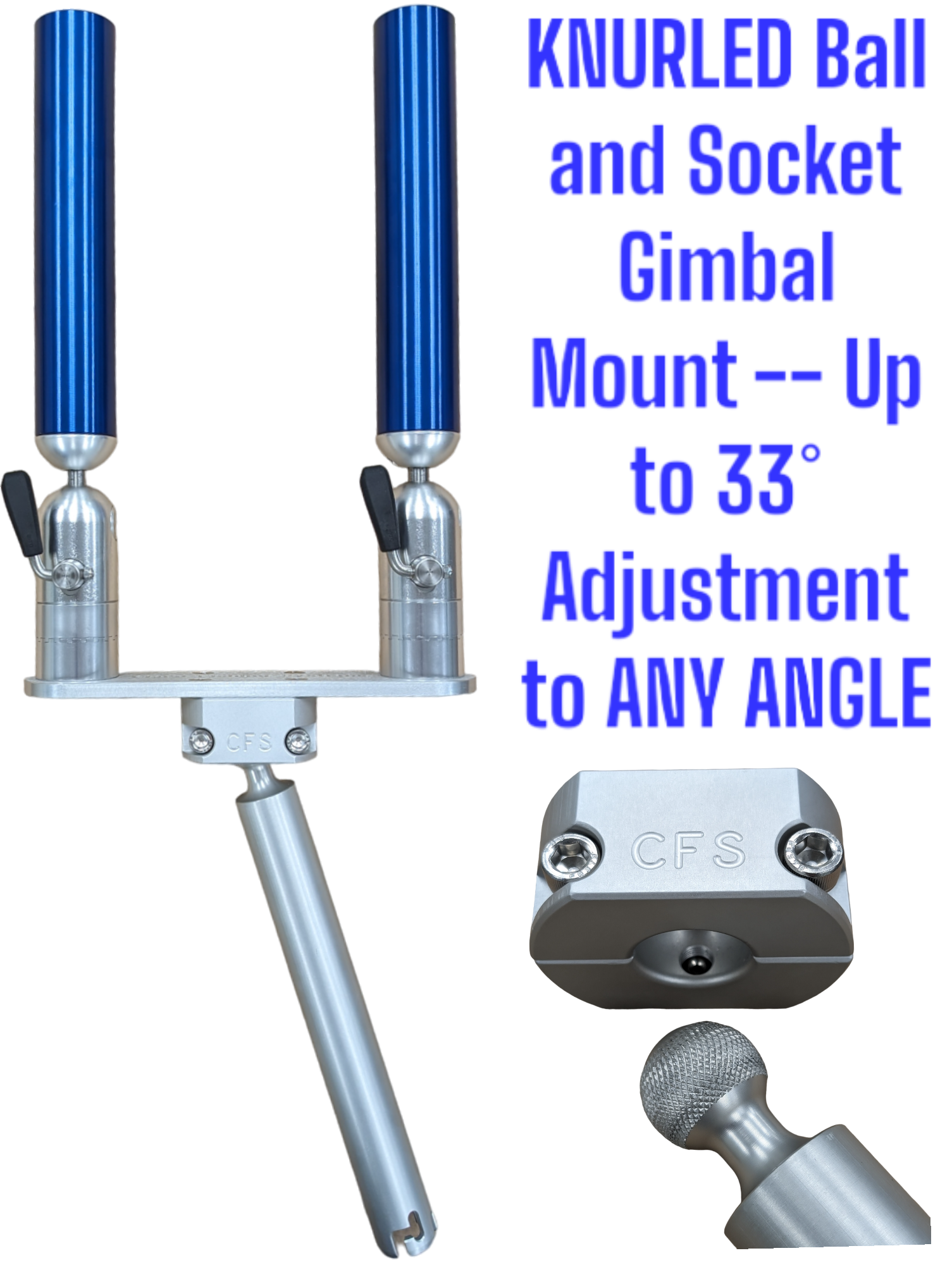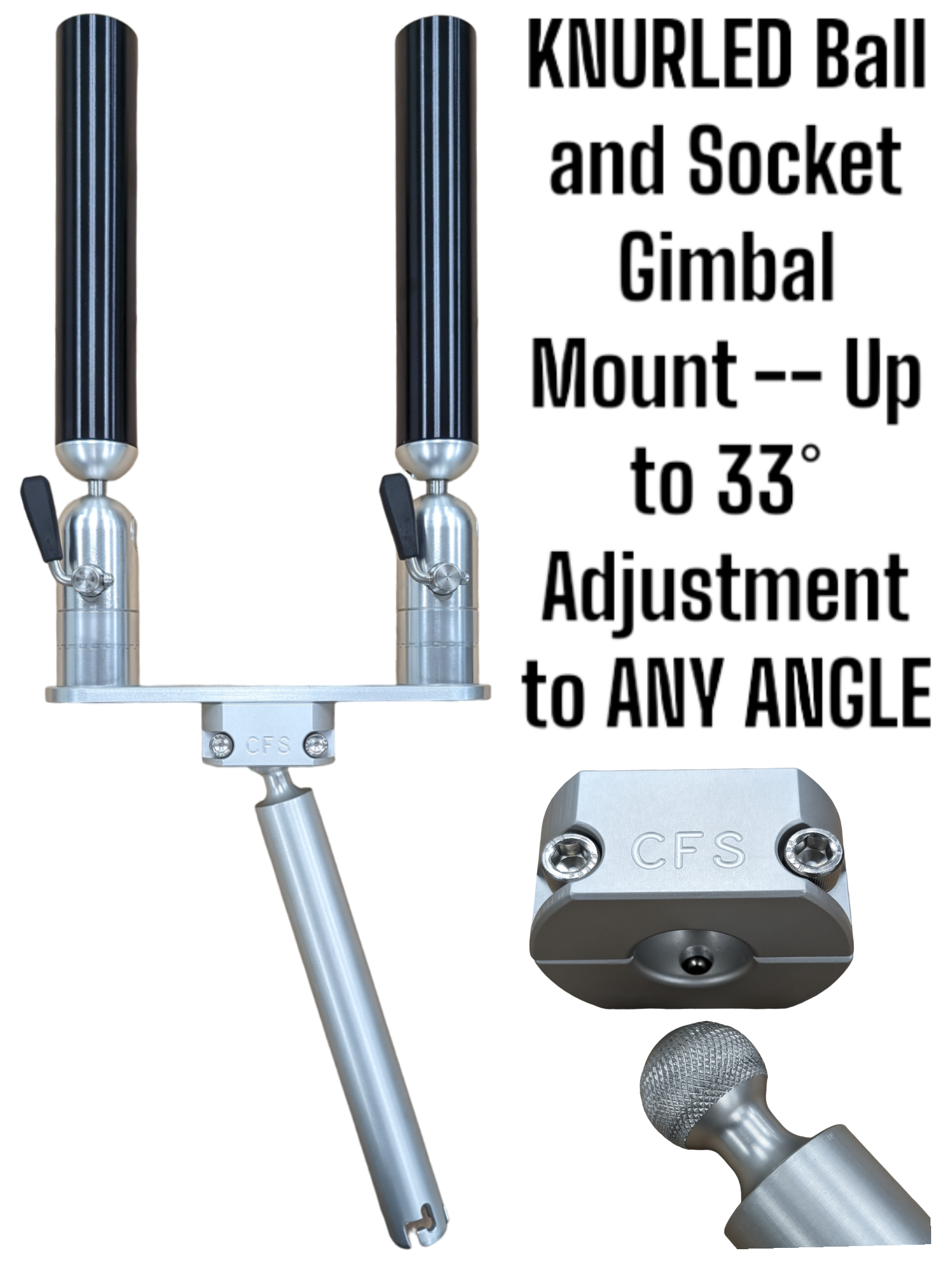 No tools are required for positioning of the rod holder. All aluminum components are anodized to military specs.