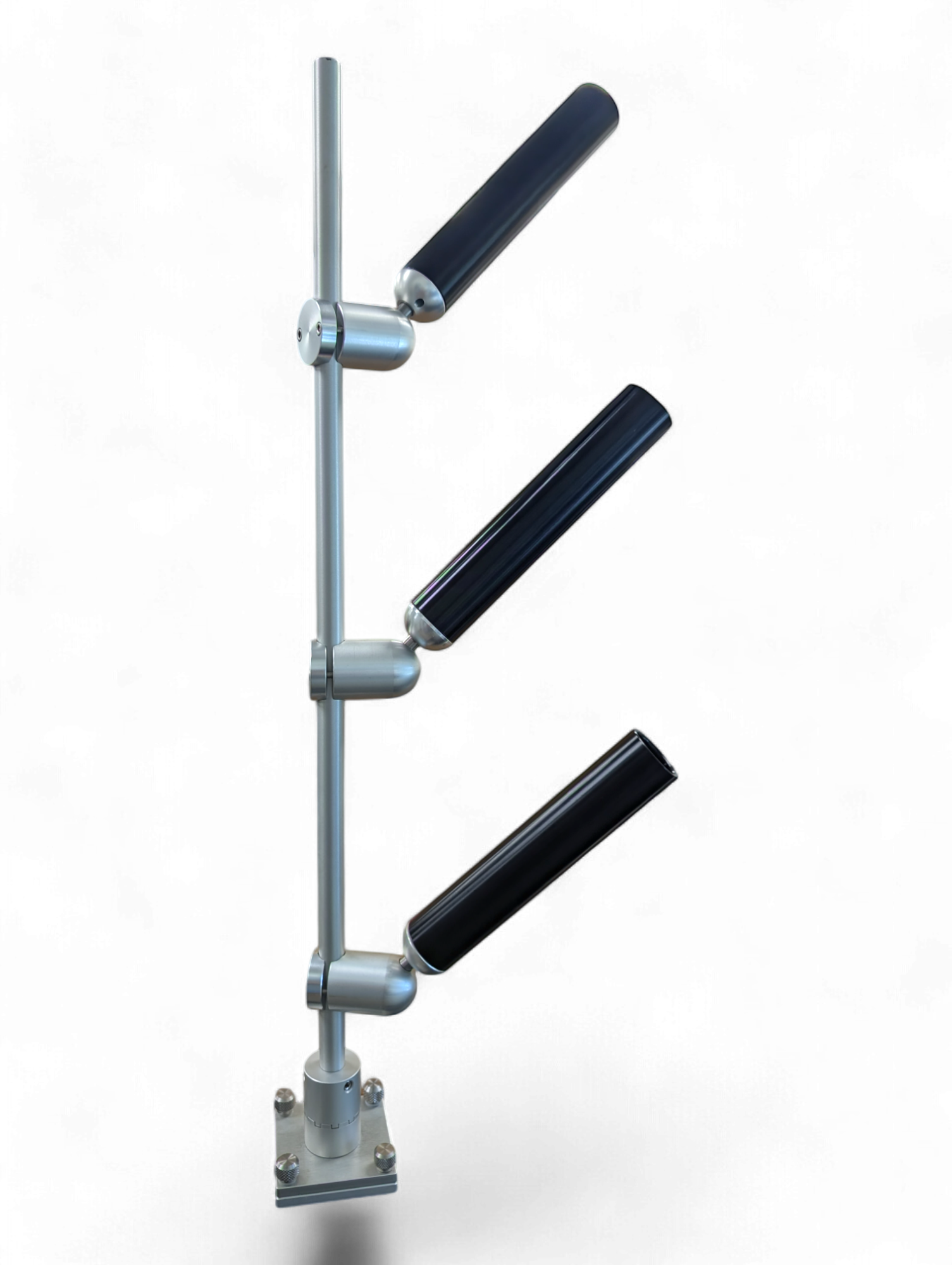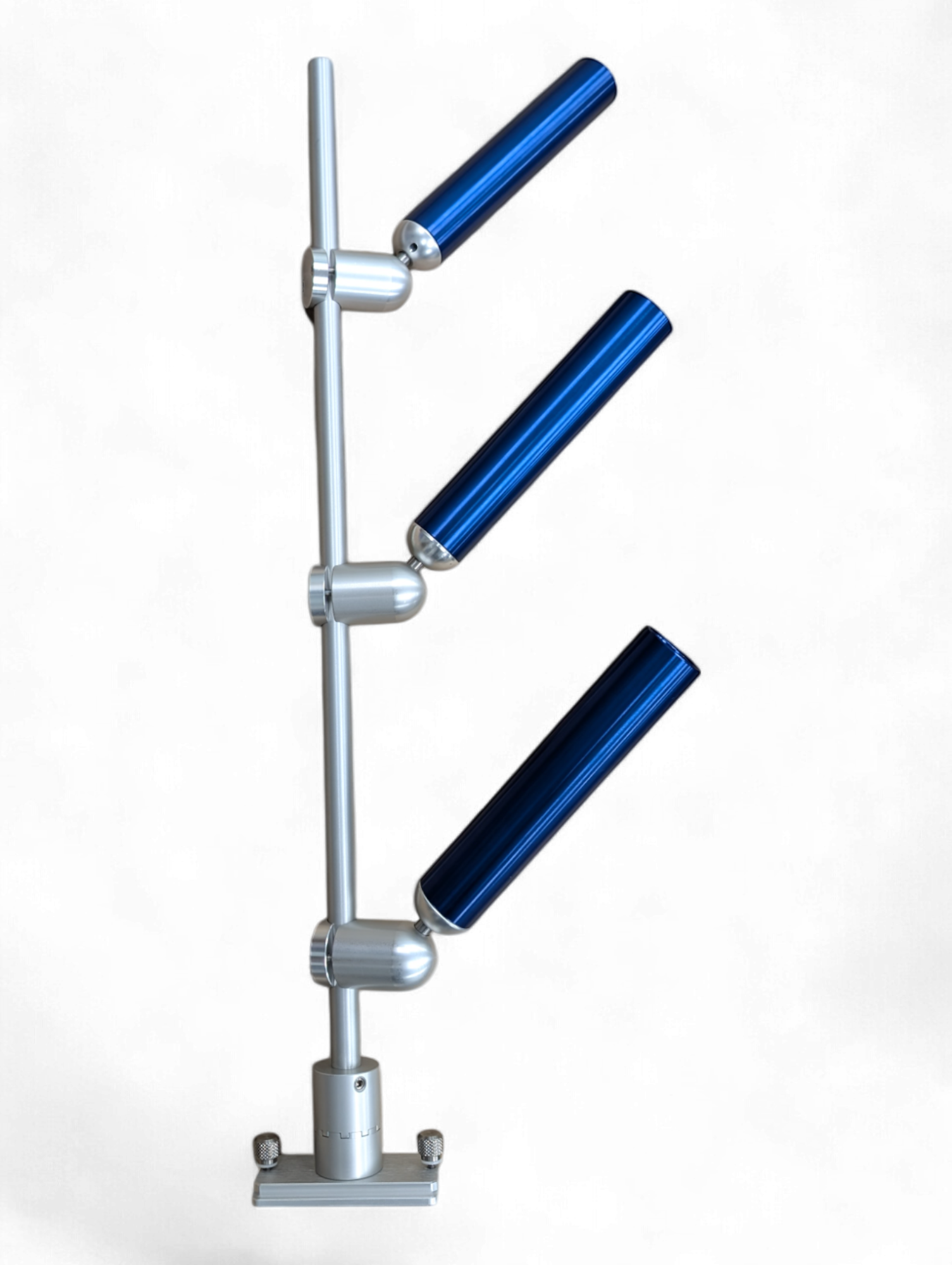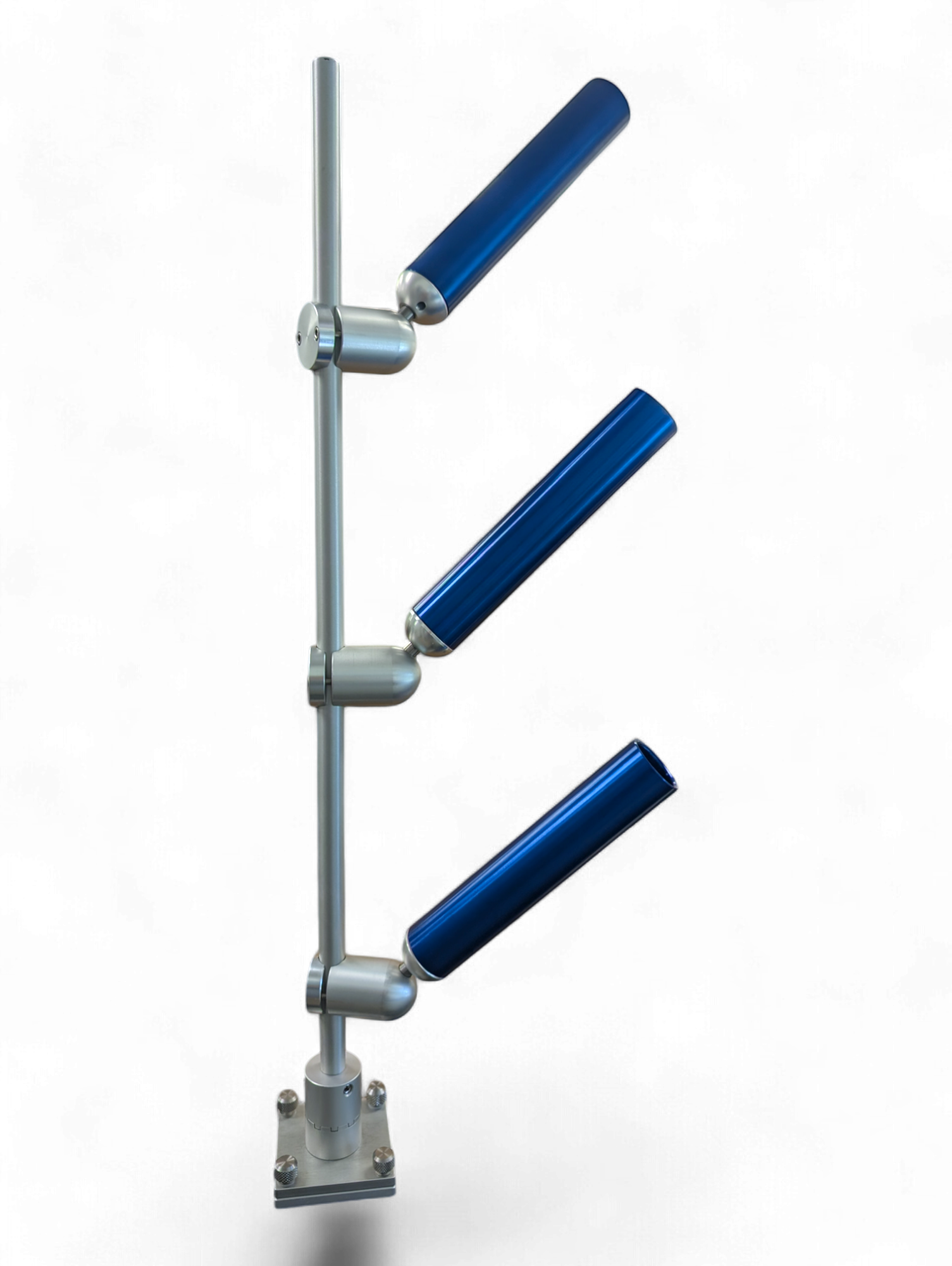 Our Triple Tree Mast stands 36” high and is a made from a 7/8" solid aluminum. It is available in quick release, thumbscrew and track mounting options (as shown in photos). It comes standard with our adjustable indexing base which allows you to pick up the mast, and rotate it inline with the boat when you are done fishing. By safely keeping all of your tubes inside of the vessel, you can keep your mind at ease when approaching dock posts, or when trailering your vessel.