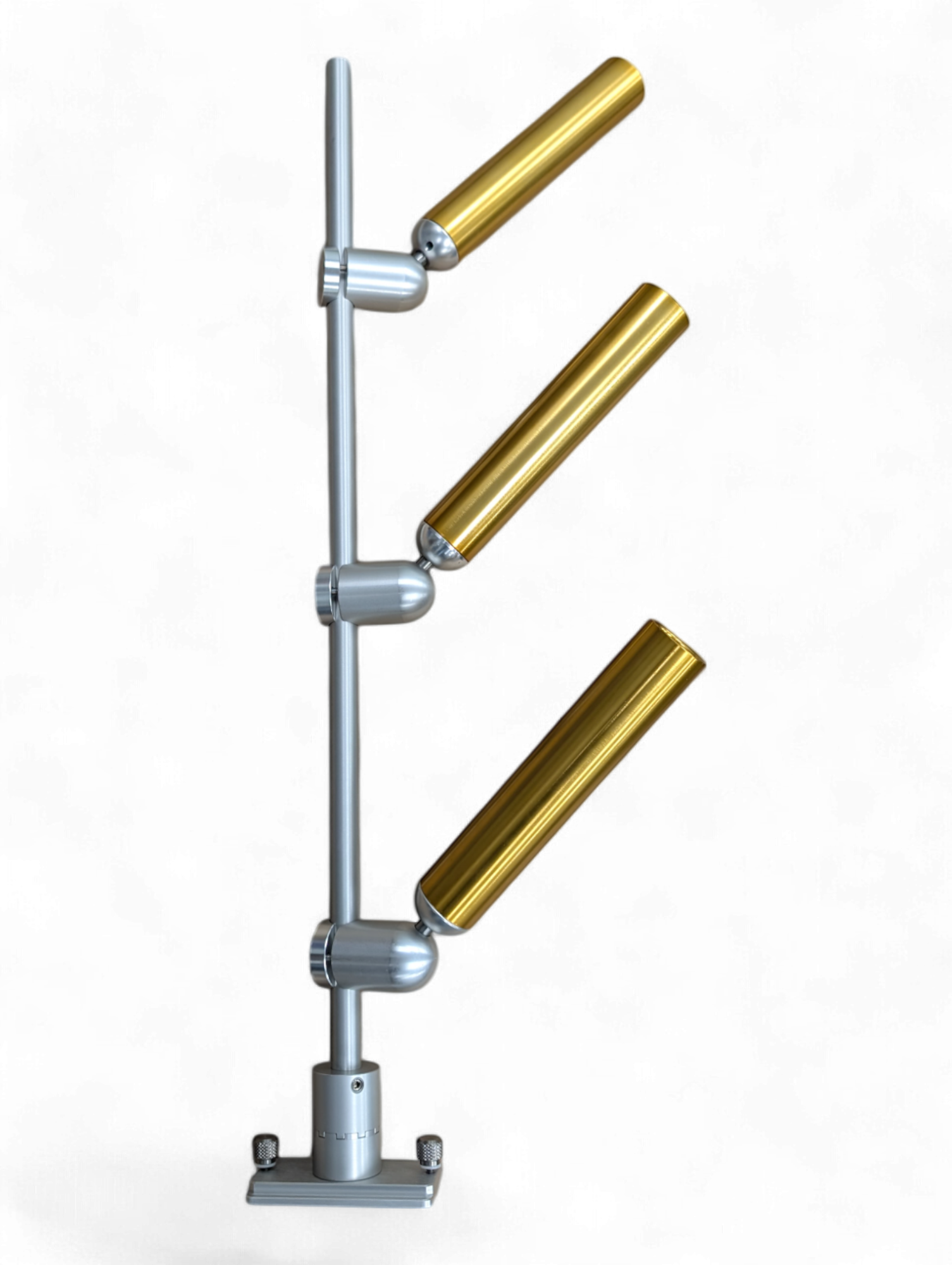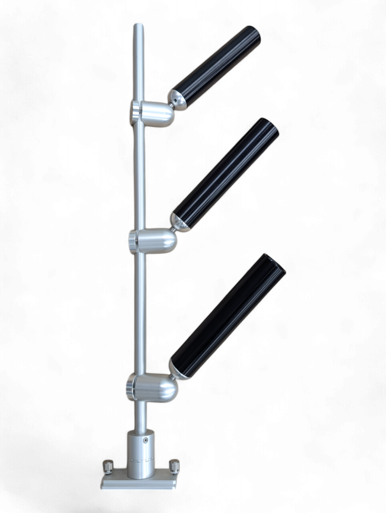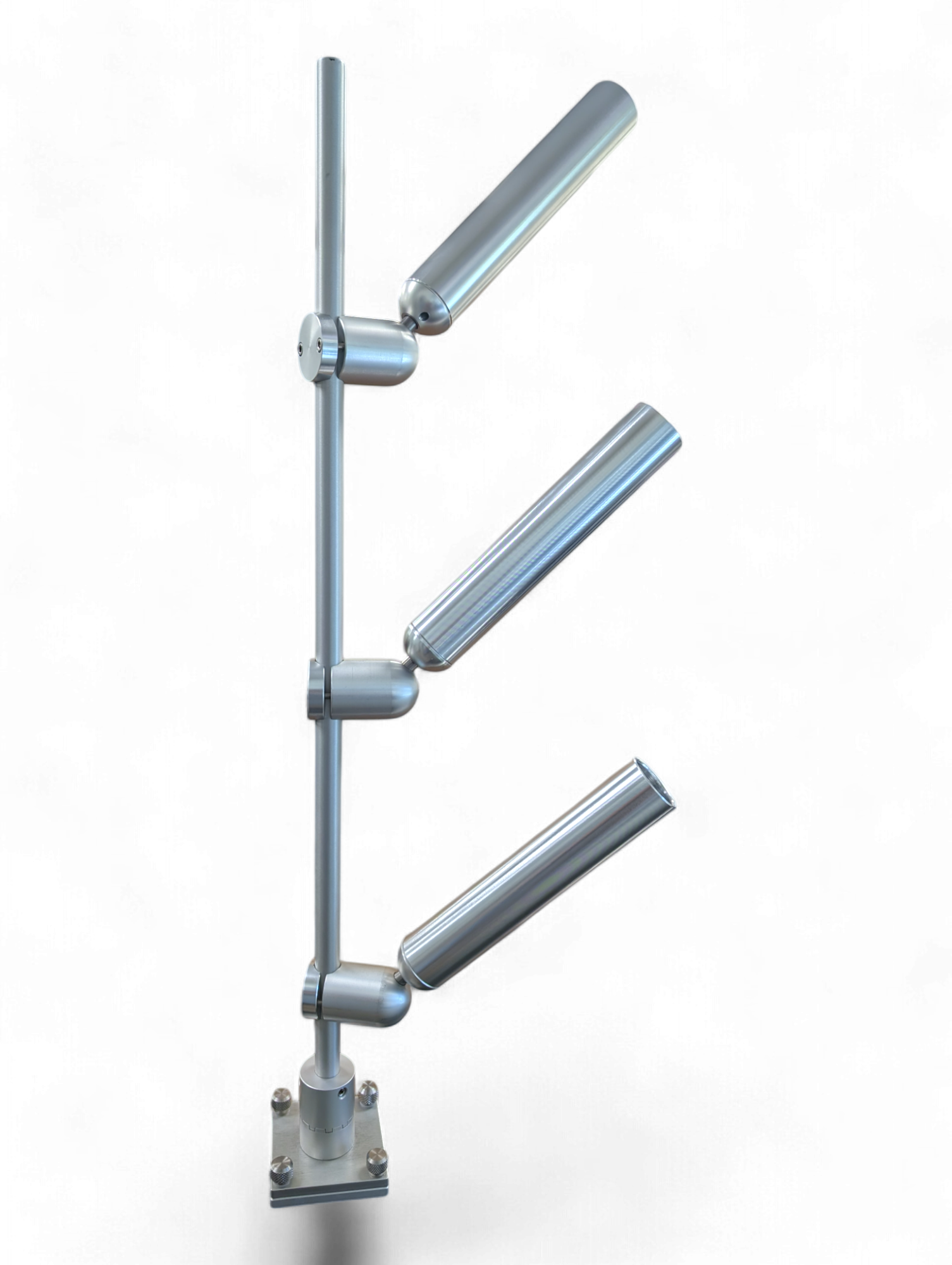 Our Triple Tree Mast stands 36” high and is a made from a 7/8" solid aluminum. It is available in quick release, thumbscrew and track mounting options (as shown in photos). It comes standard with our adjustable indexing base which allows you to pick up the mast, and rotate it inline with the boat when you are done fishing. By safely keeping all of your tubes inside of the vessel, you can keep your mind at ease when approaching dock posts, or when trailering your vessel.