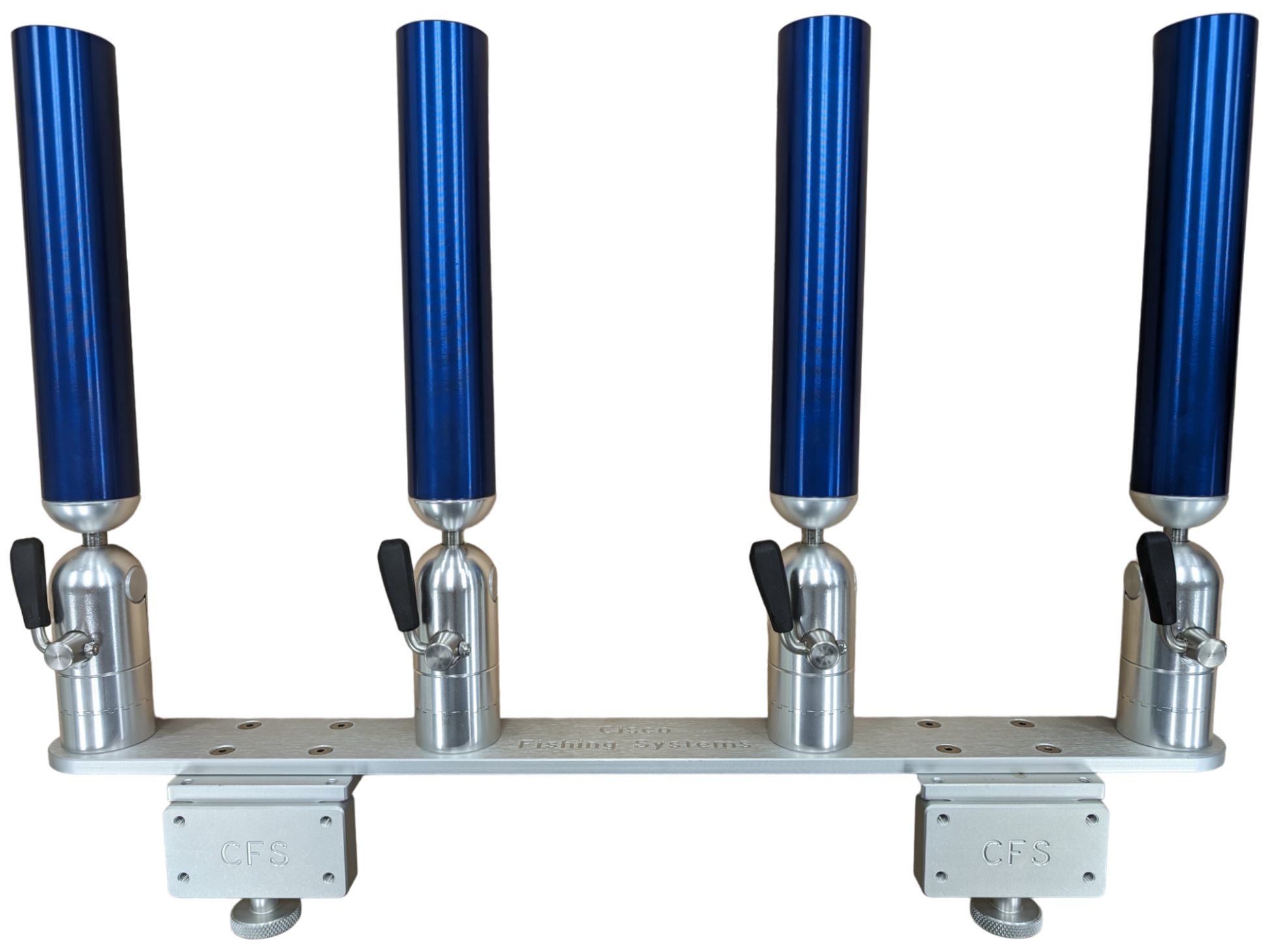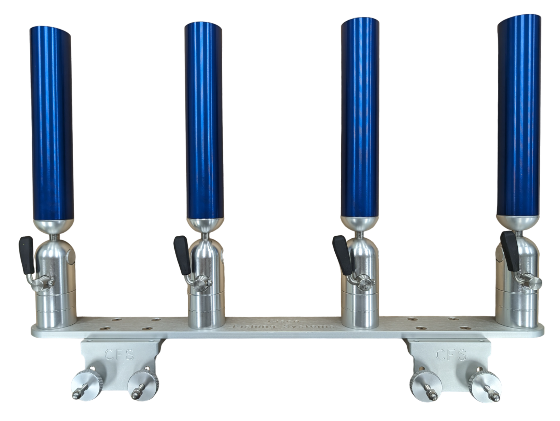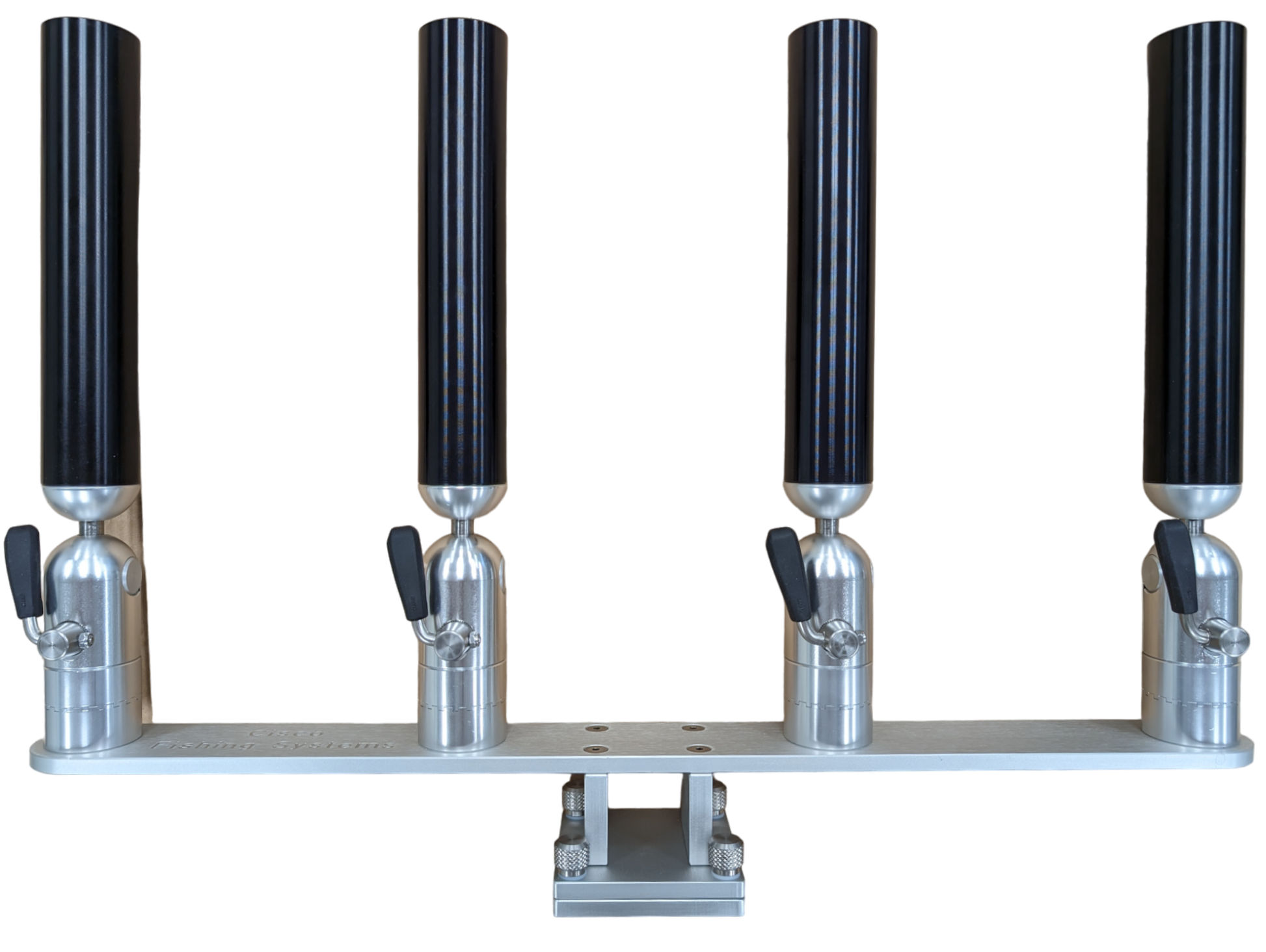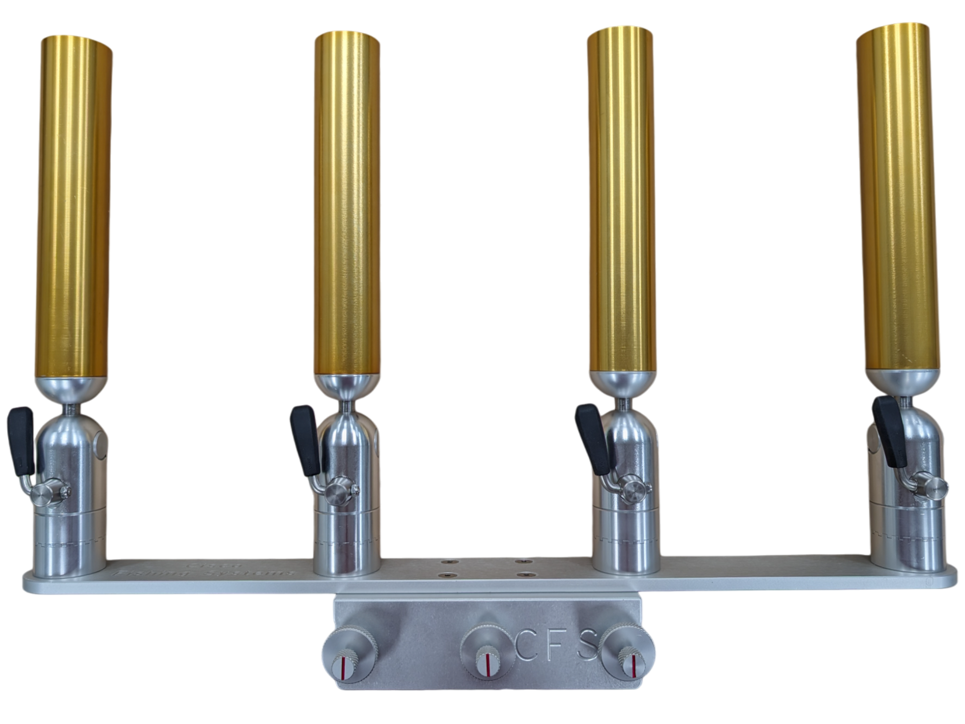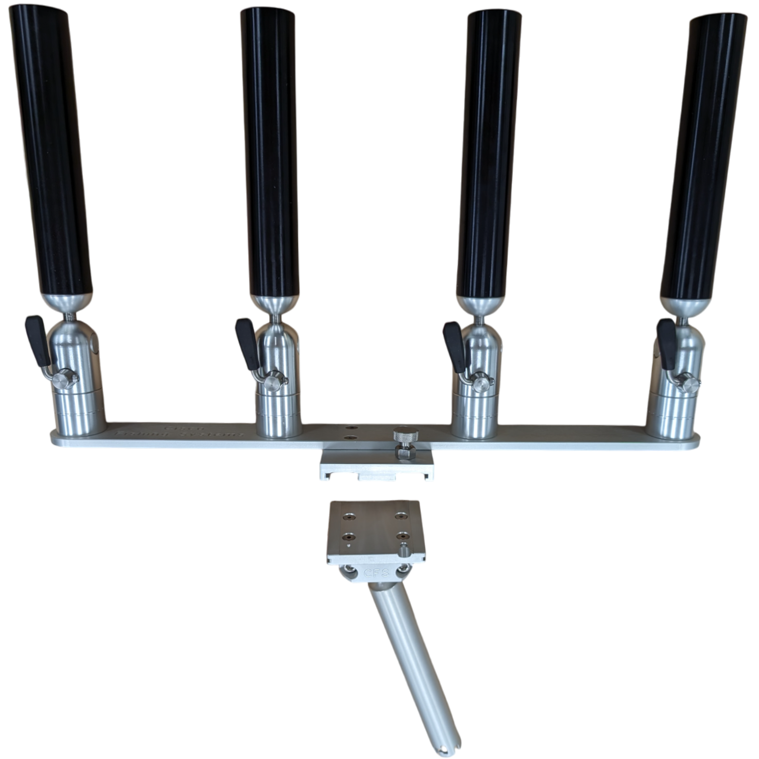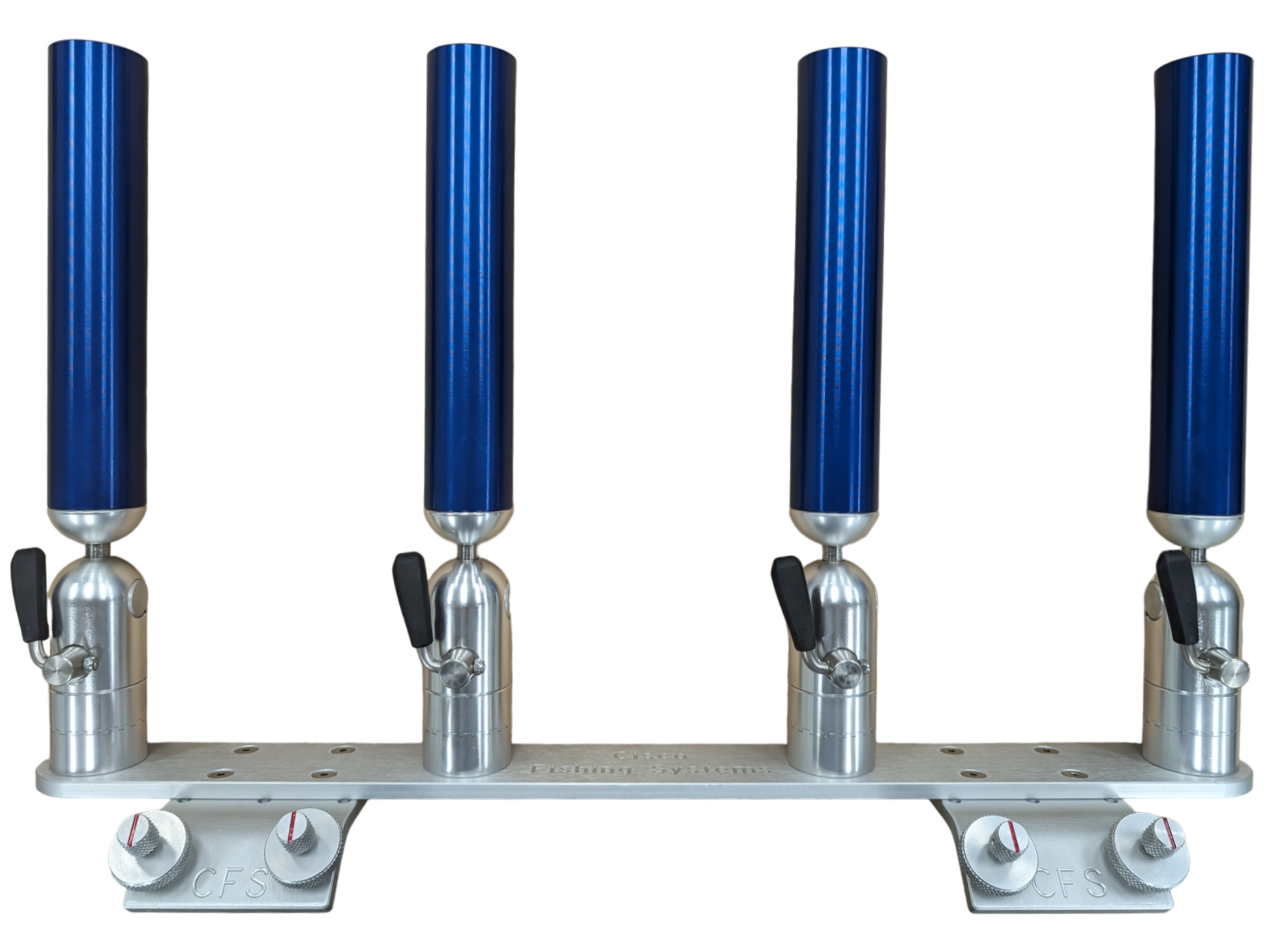 The quad rod holders are available in various mounting platforms. Having the rod holders attached to the triple plate allows for quick and easy removal of multiple rod holders from the vessel. All of our triple setups are available in Silver, Blue, Black or Gold to match your vessels personality.