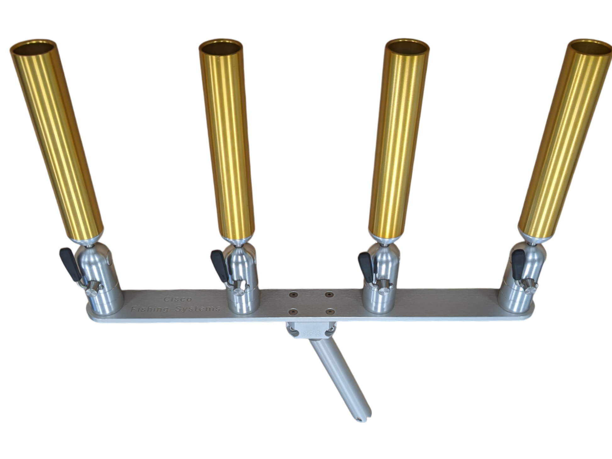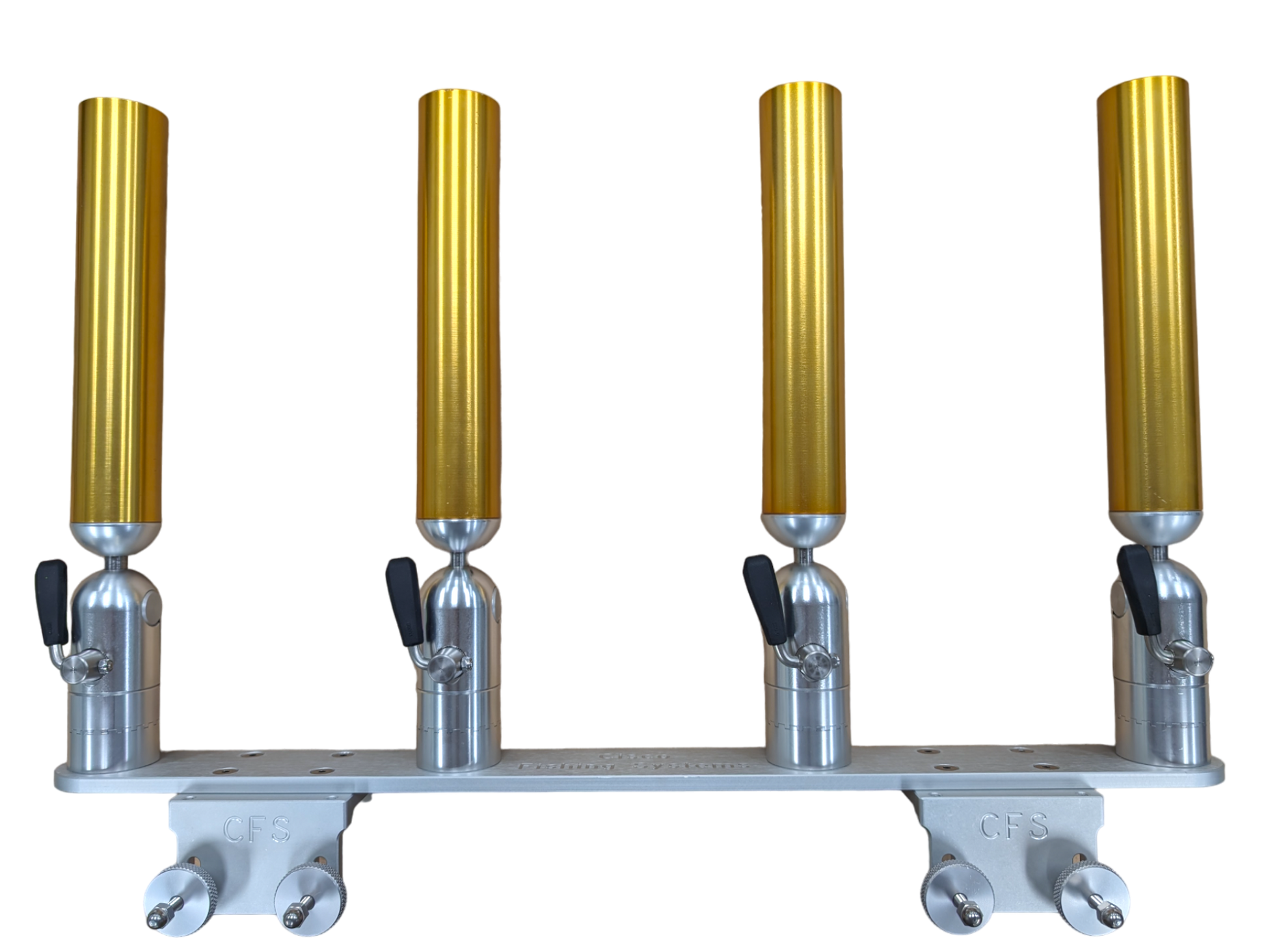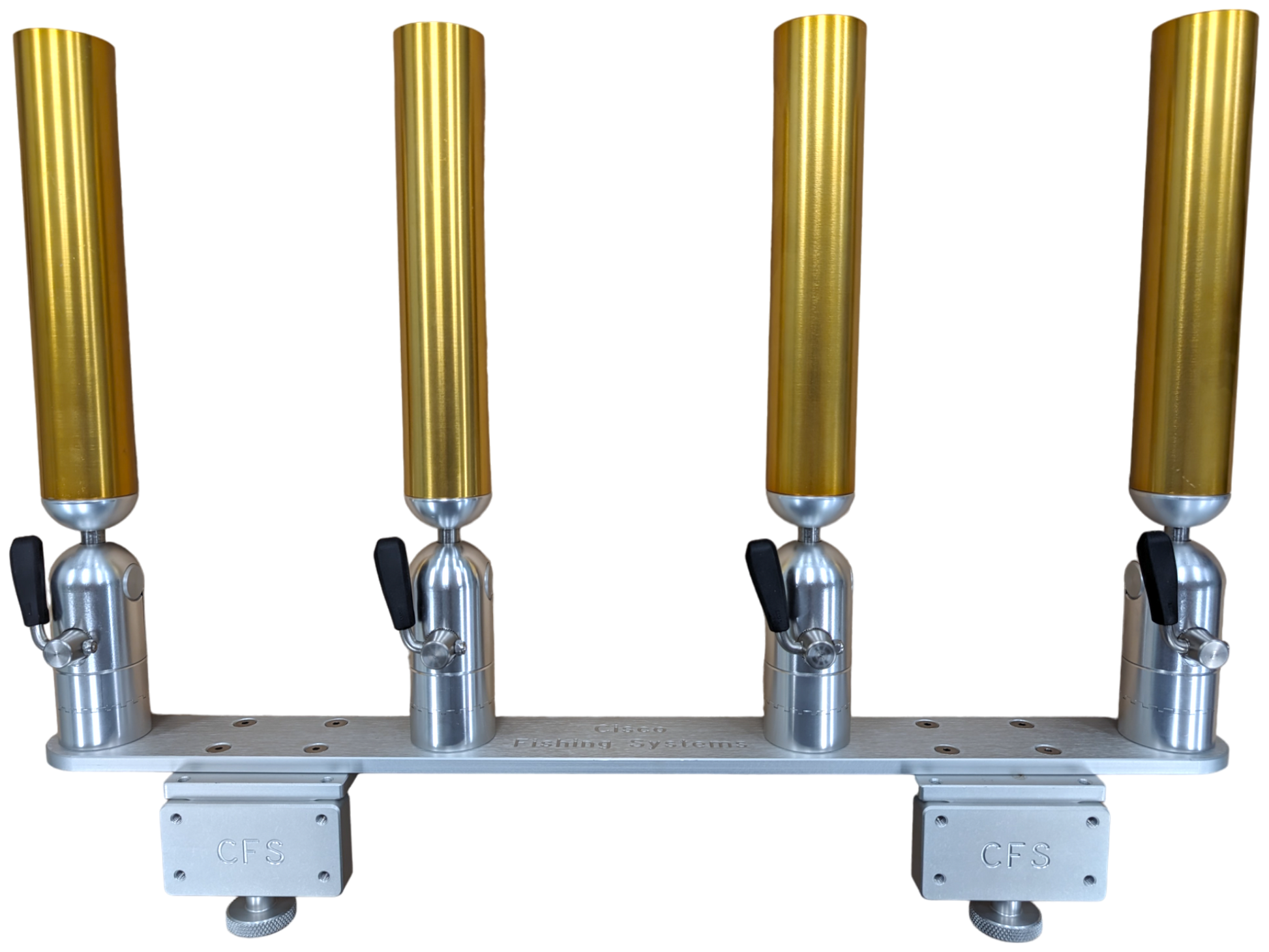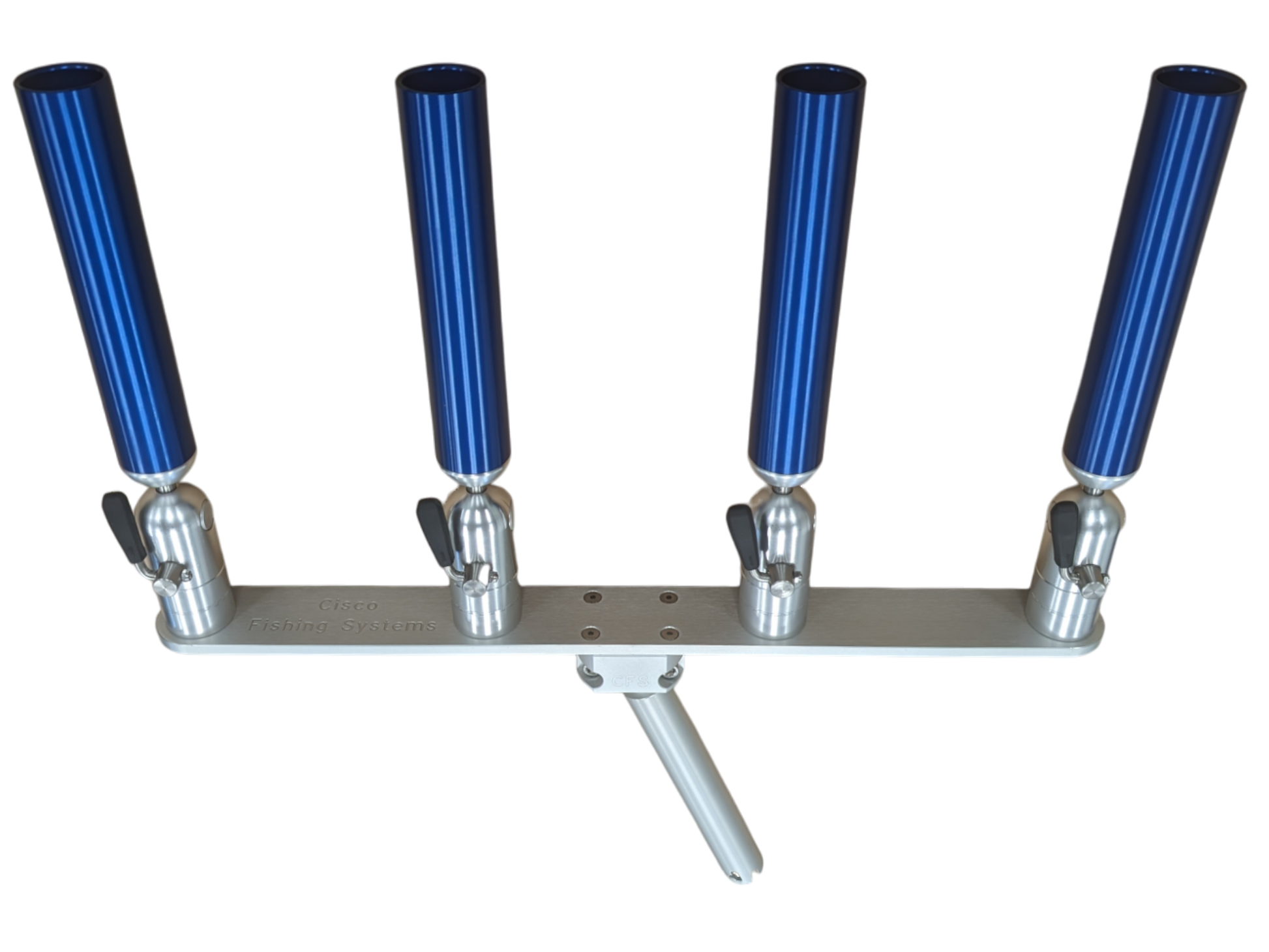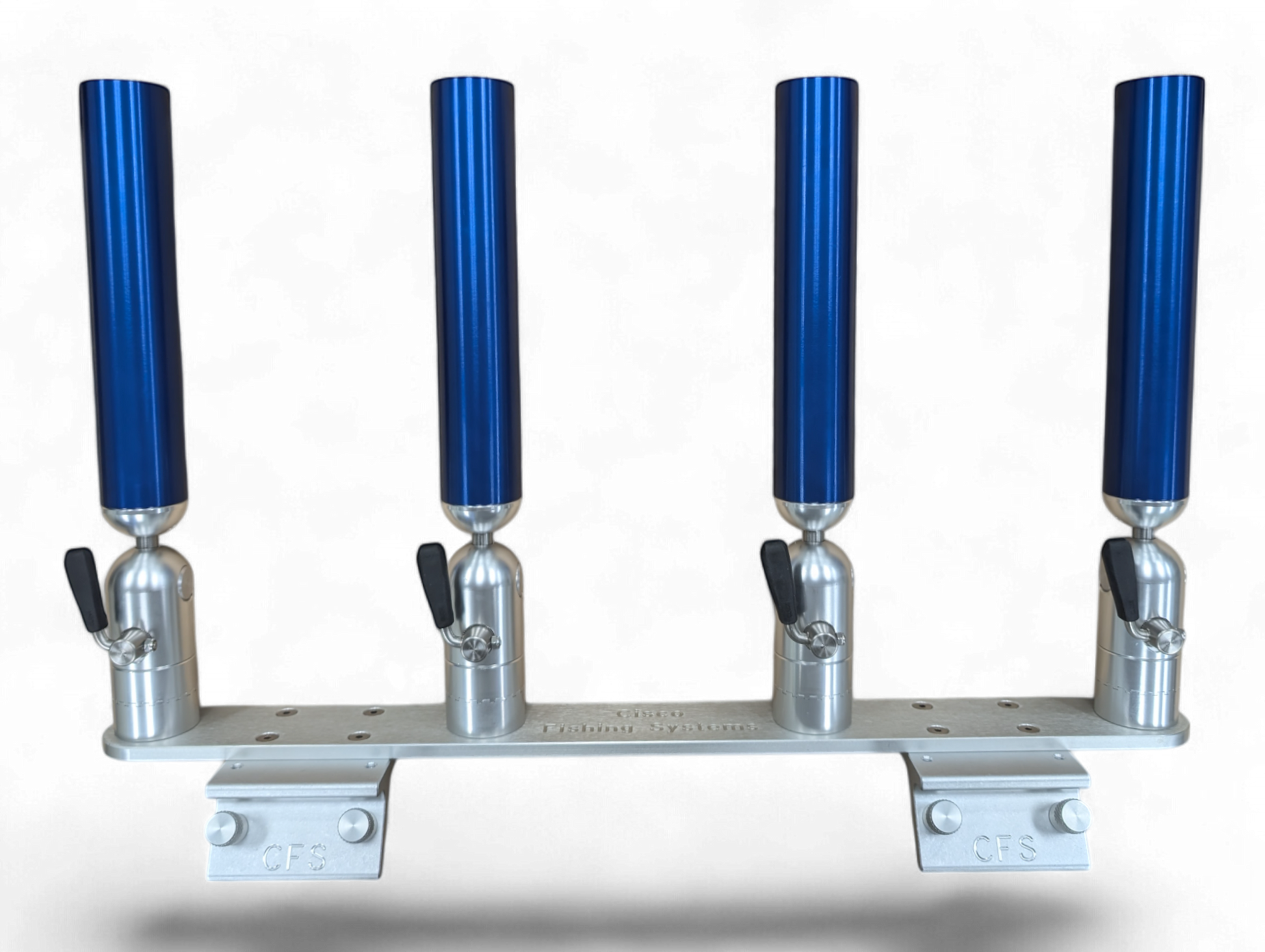 The quad rod holders are available in various mounting platforms. Having the rod holders attached to the triple plate allows for quick and easy removal of multiple rod holders from the vessel. All of our triple setups are available in Silver, Blue, Black or Gold to match your vessels personality.