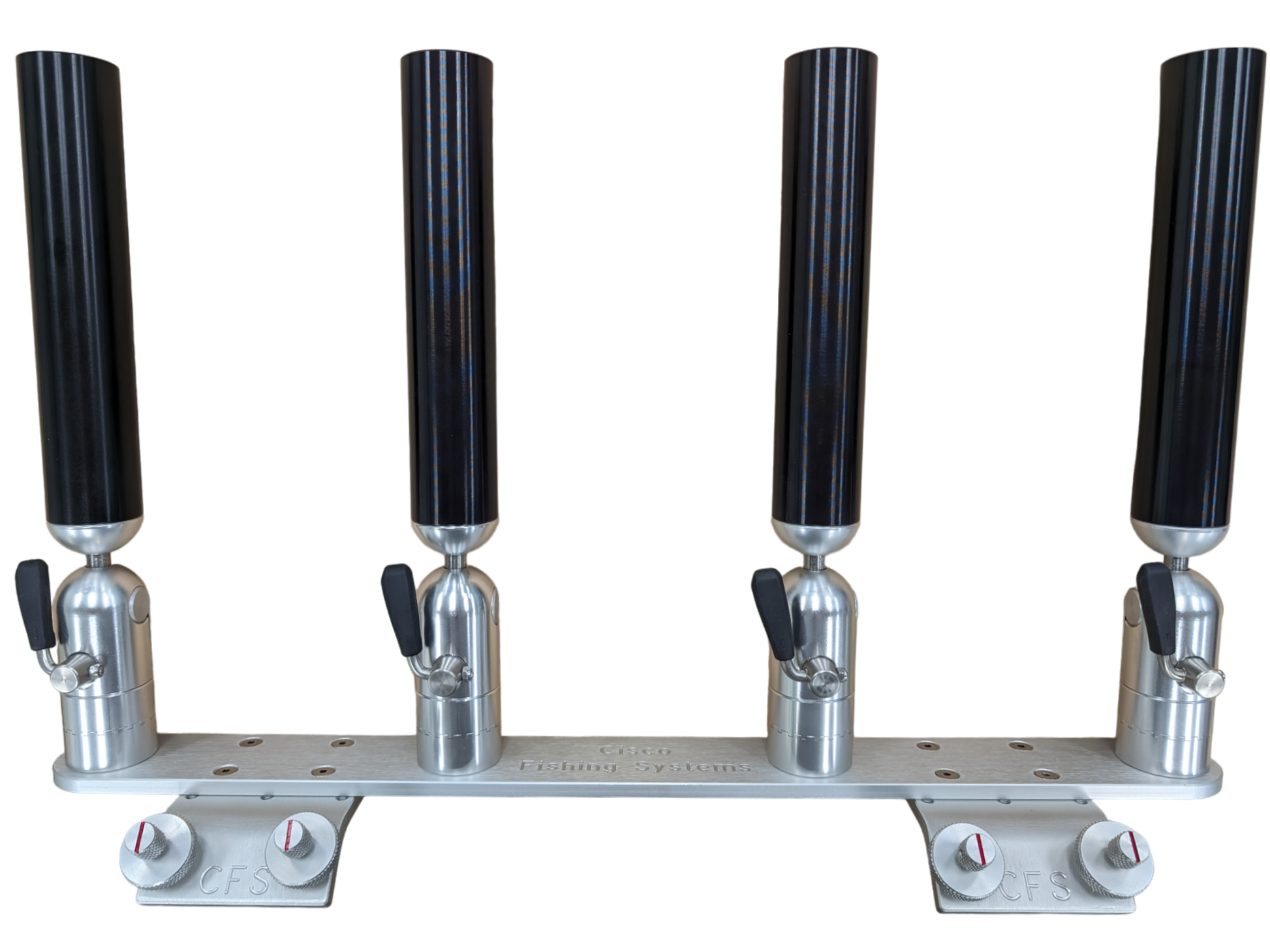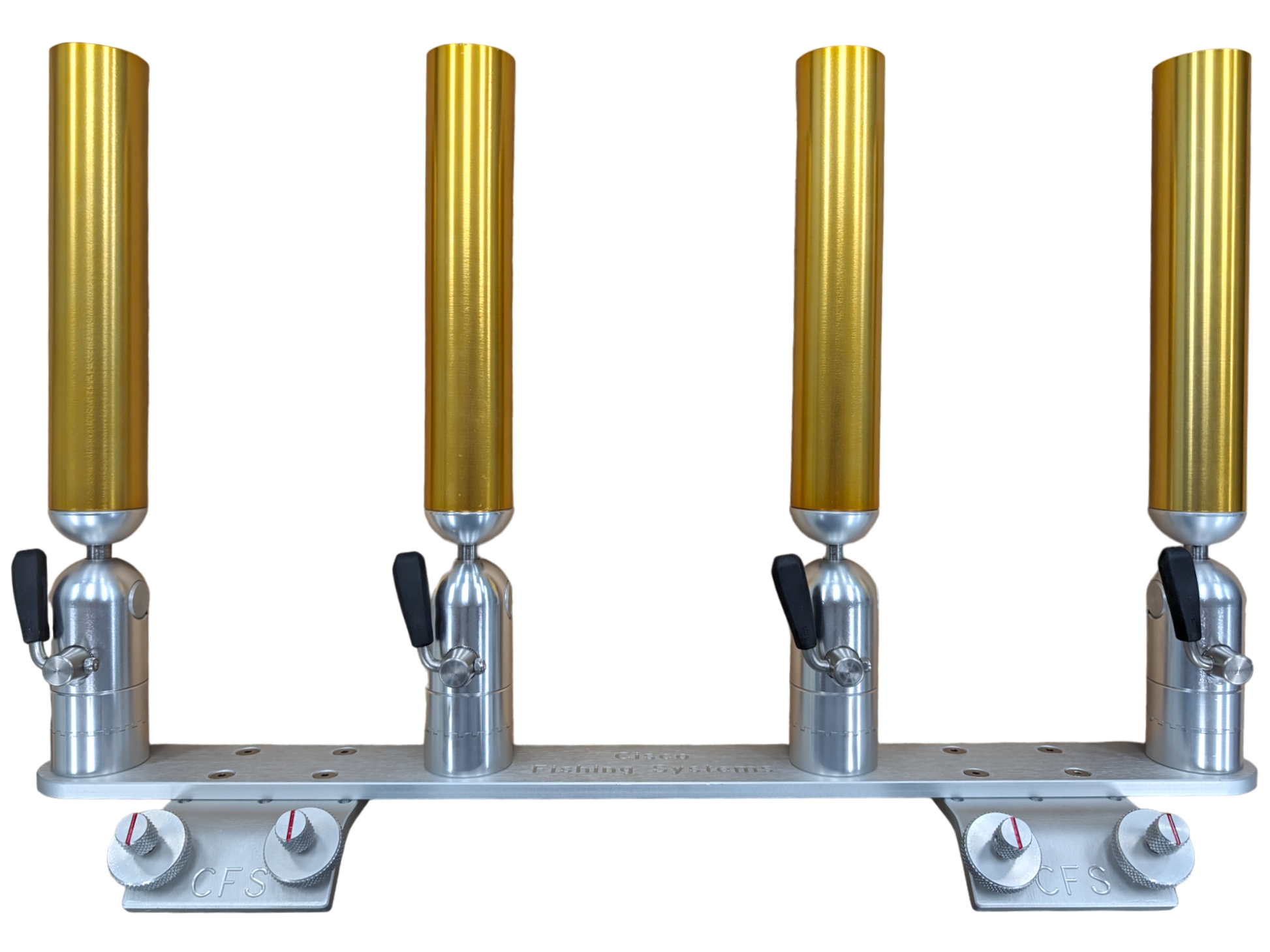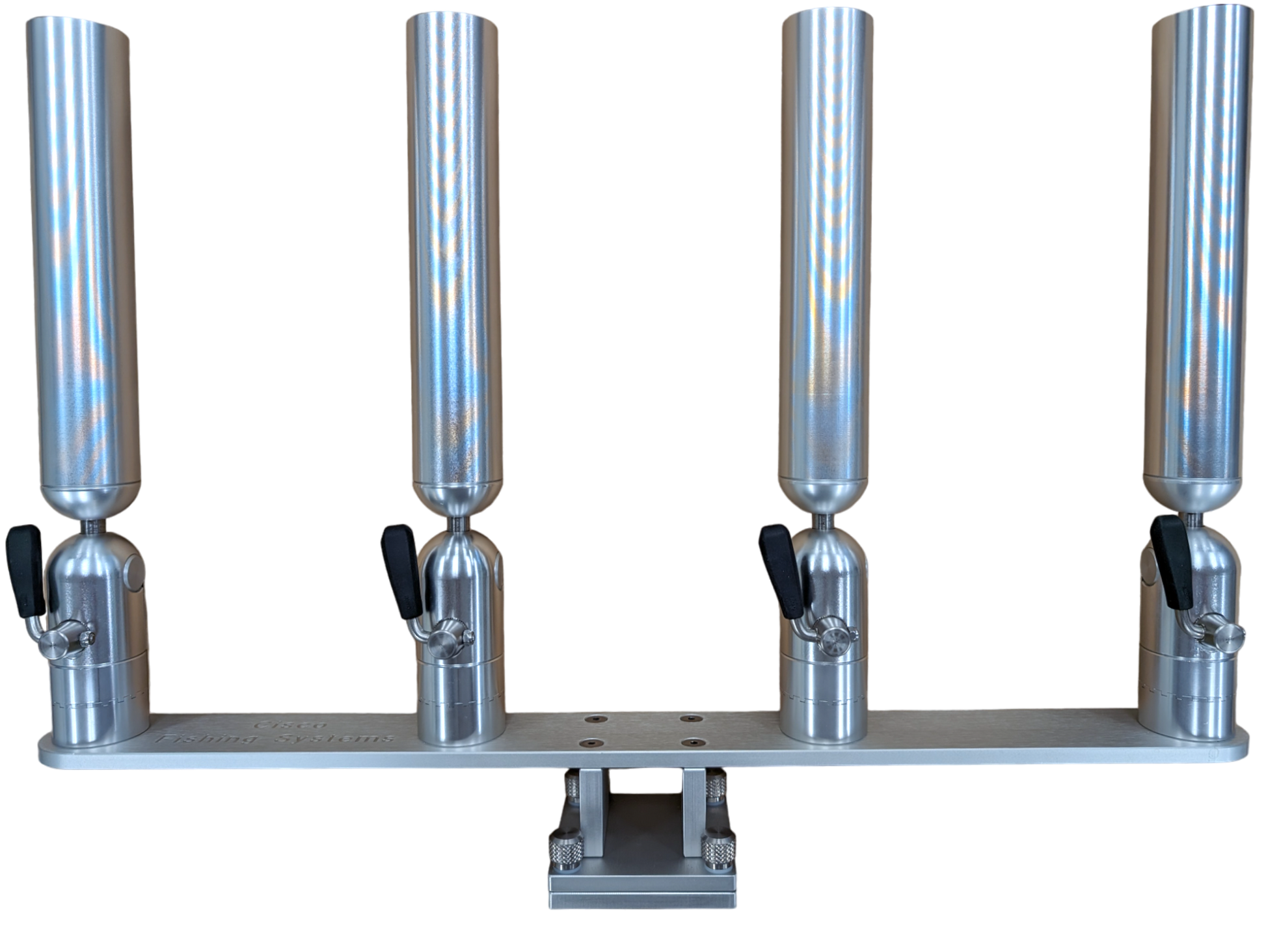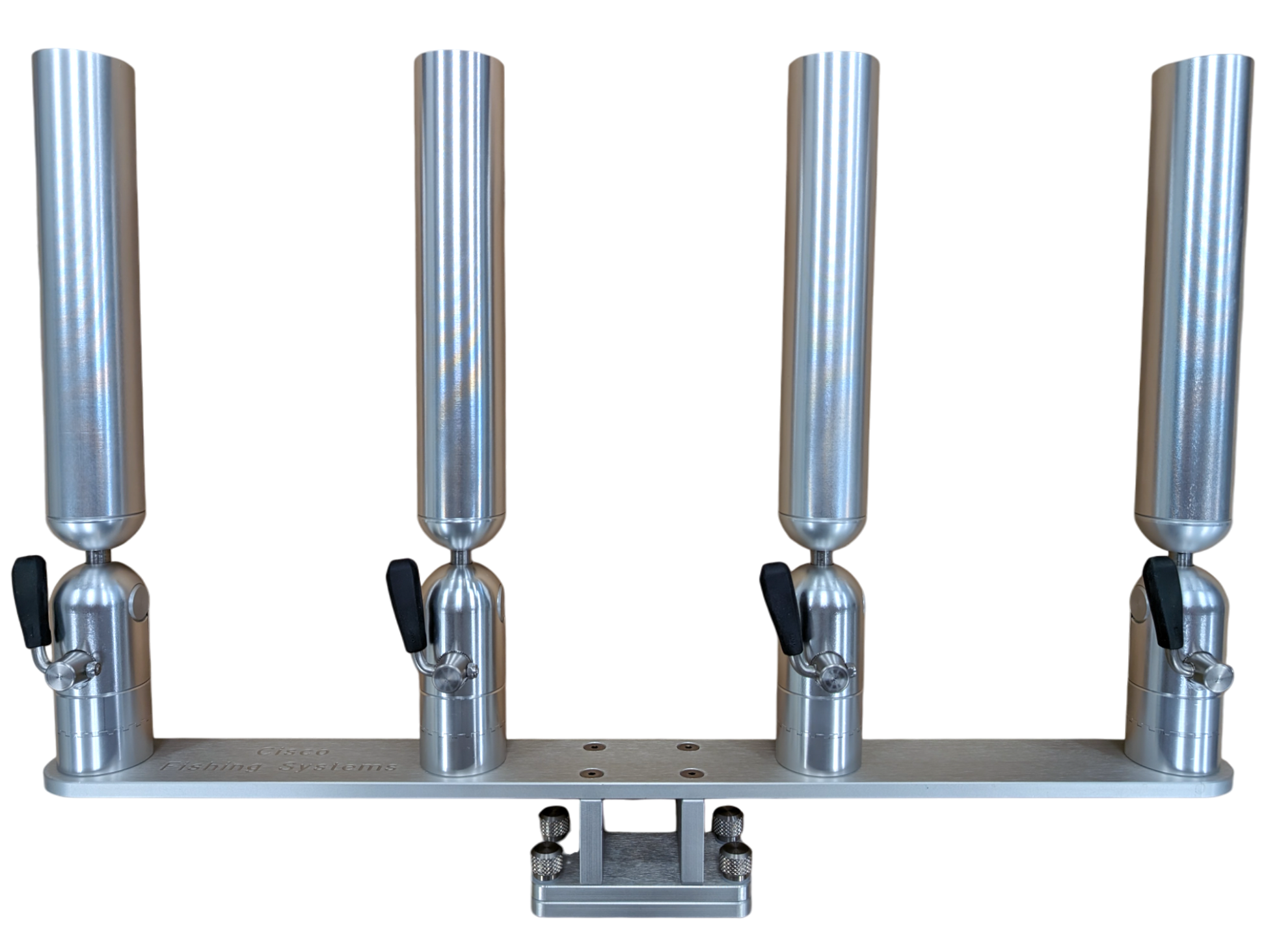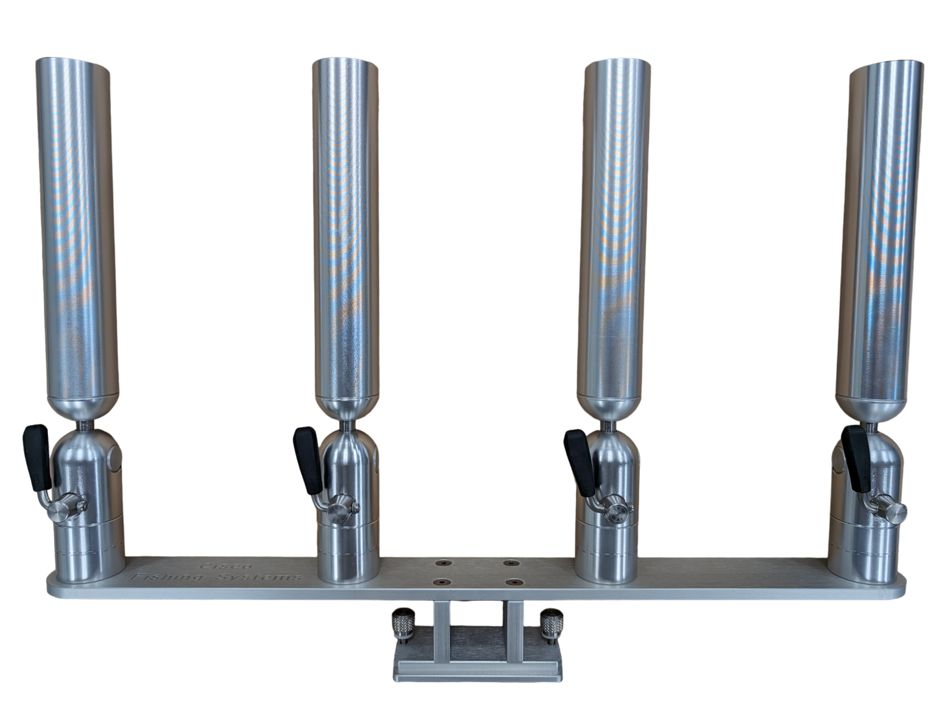 The quad rod holders are available in various mounting platforms. Having the rod holders attached to the triple plate allows for quick and easy removal of multiple rod holders from the vessel. All of our triple setups are available in Silver, Blue, Black or Gold to match your vessels personality.