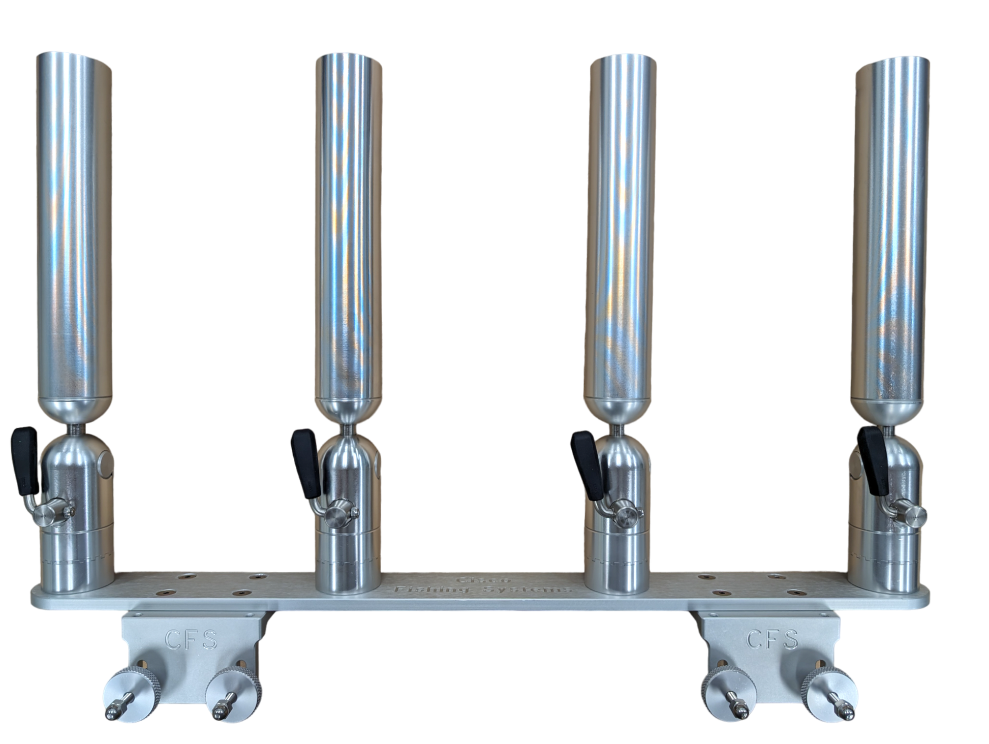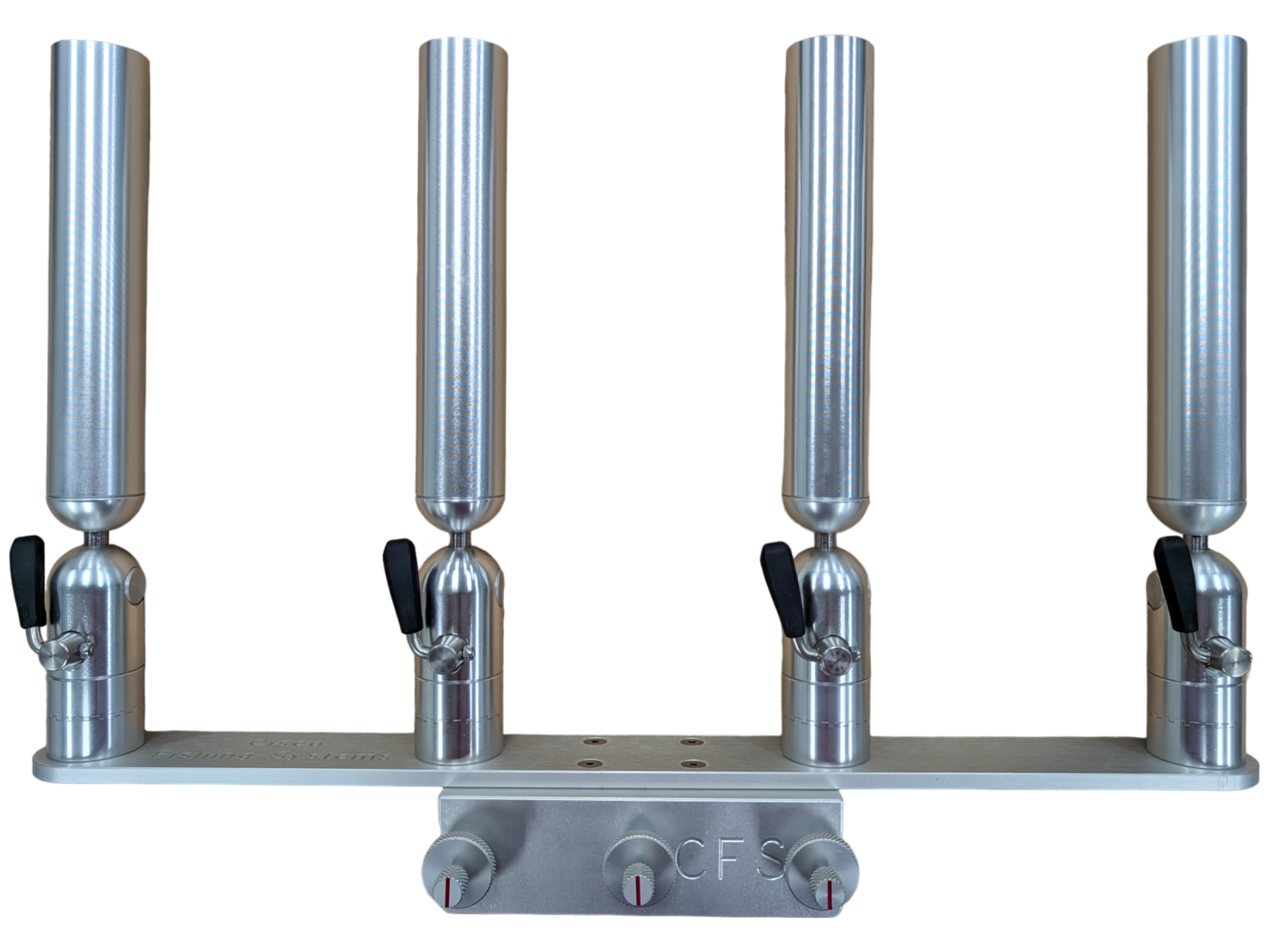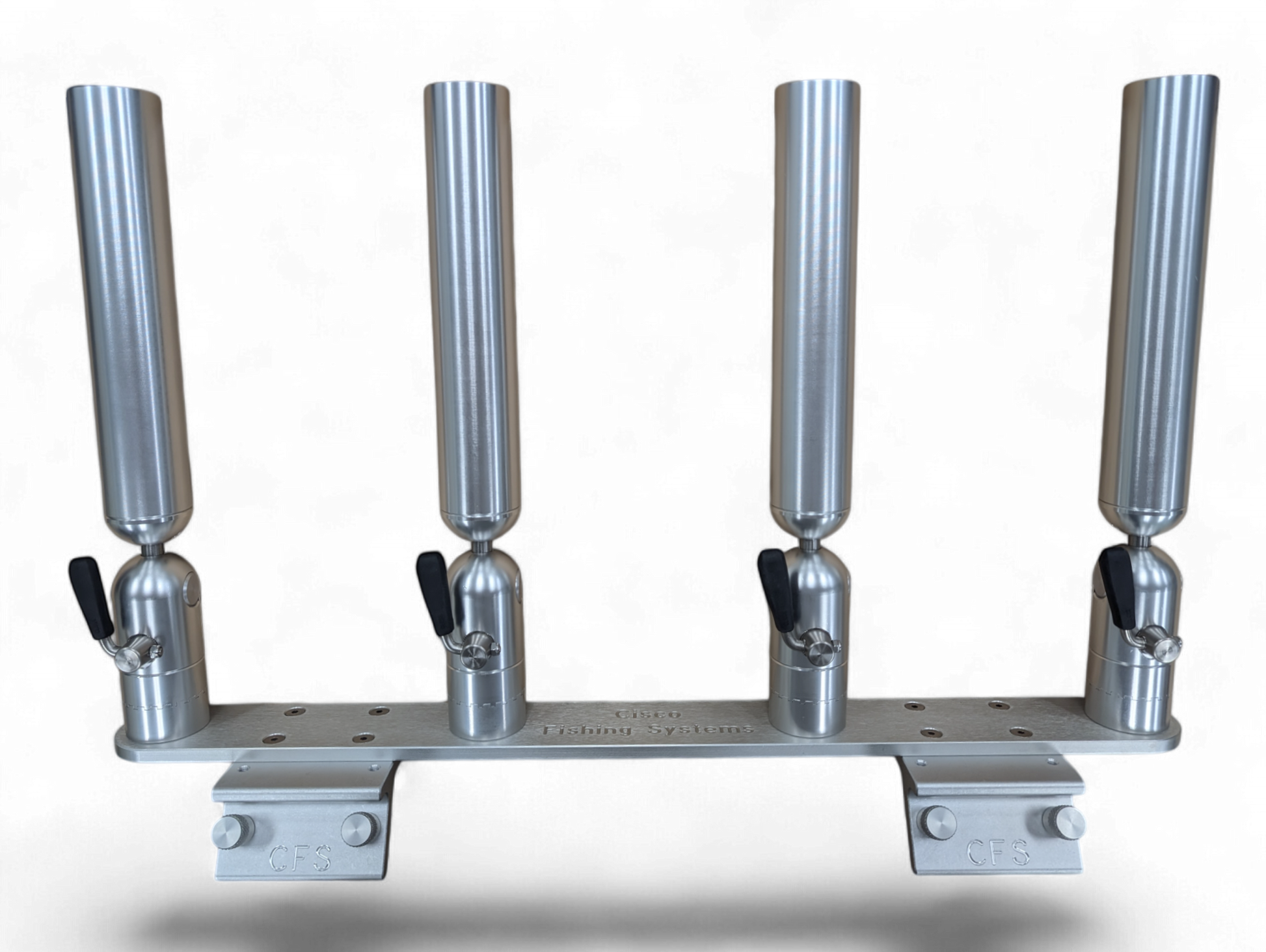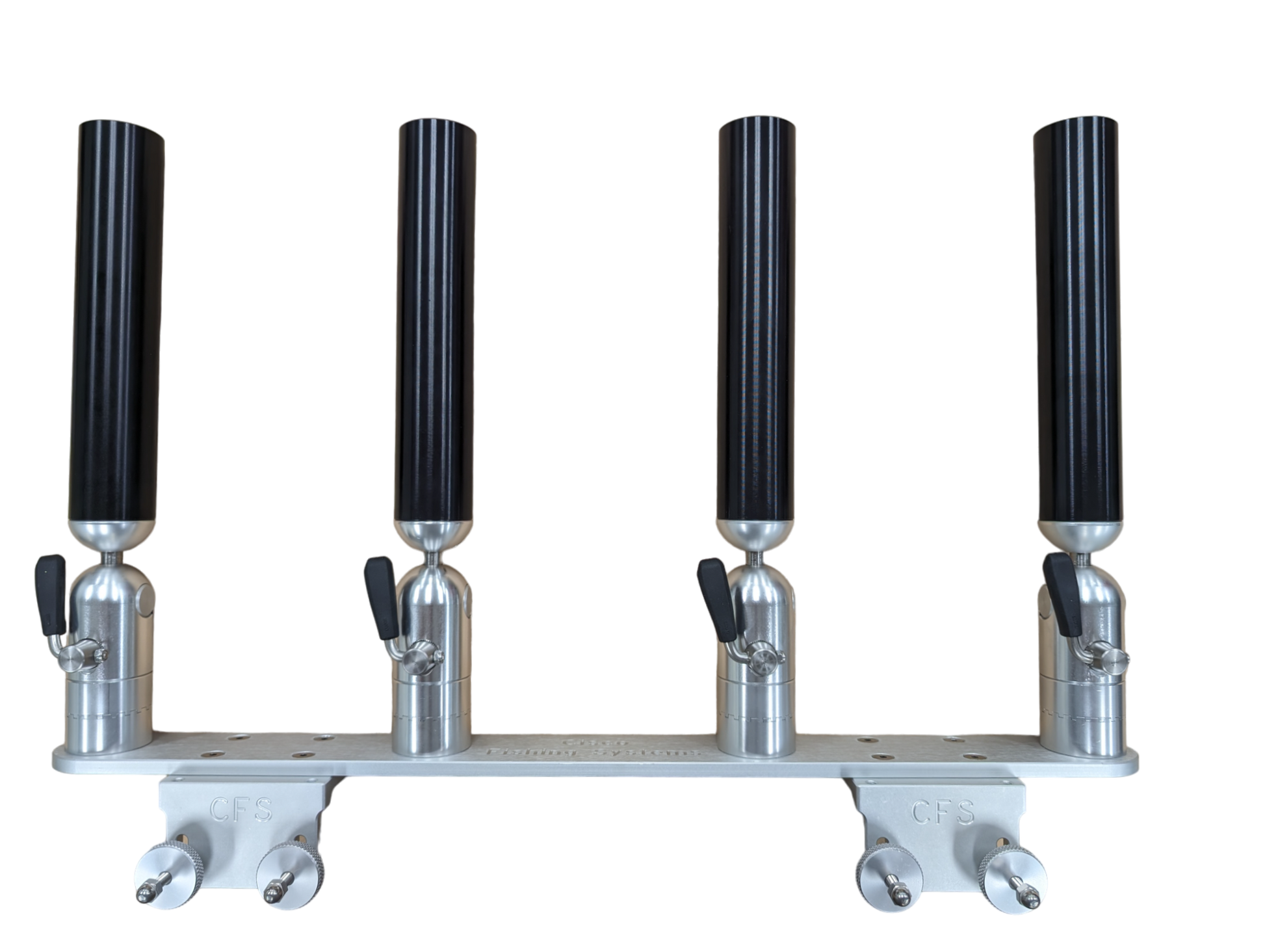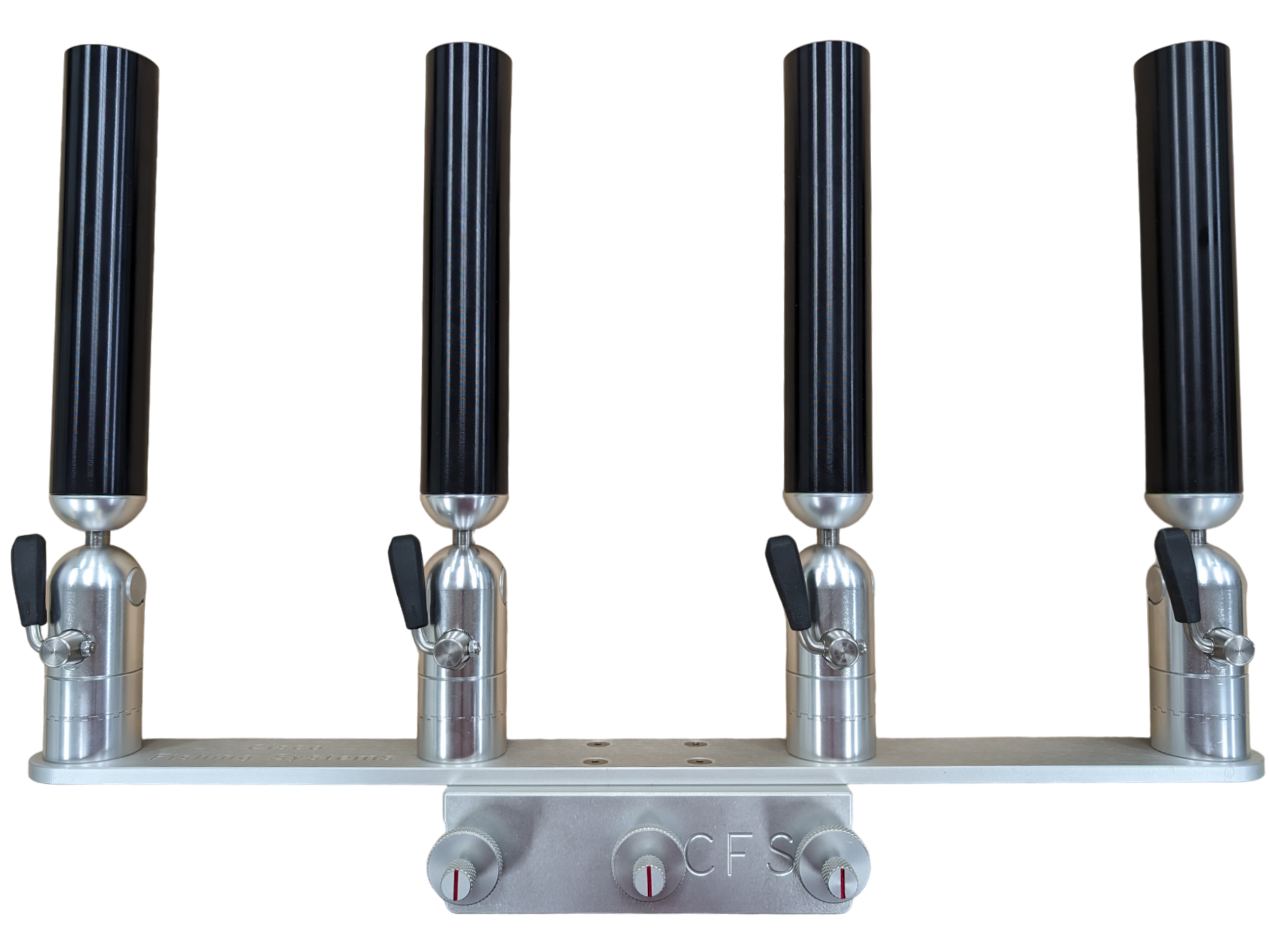 The quad rod holders are available in various mounting platforms. Having the rod holders attached to the triple plate allows for quick and easy removal of multiple rod holders from the vessel. All of our triple setups are available in Silver, Blue, Black or Gold to match your vessels personality.