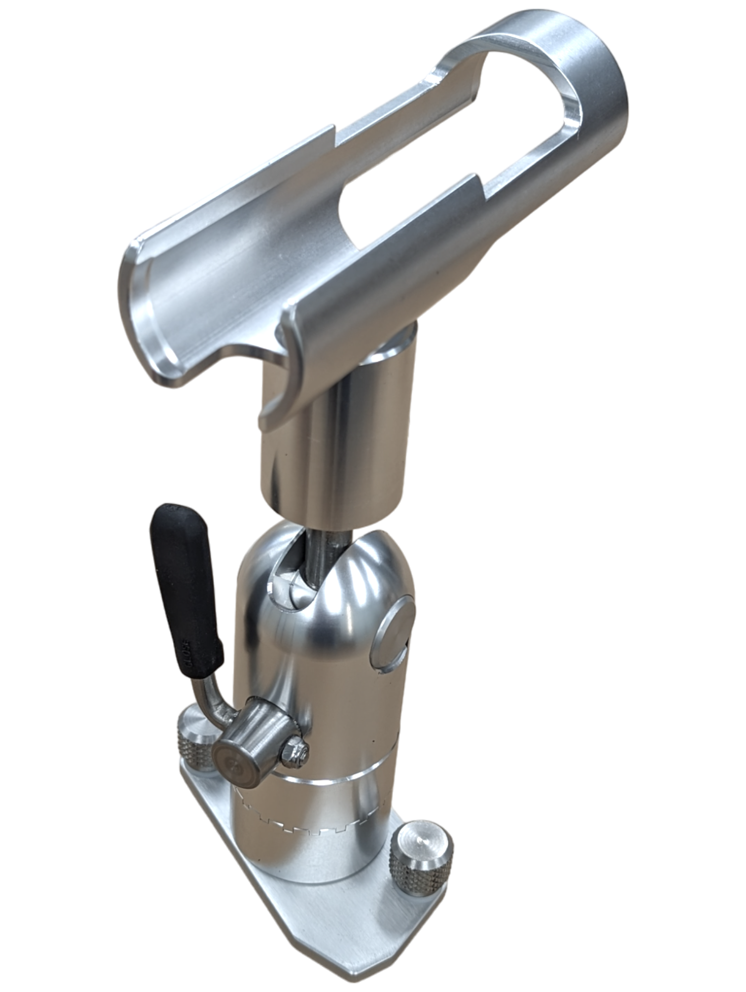 No tools are required for positioning of the rod holder. All aluminum components are anodized to military specs.