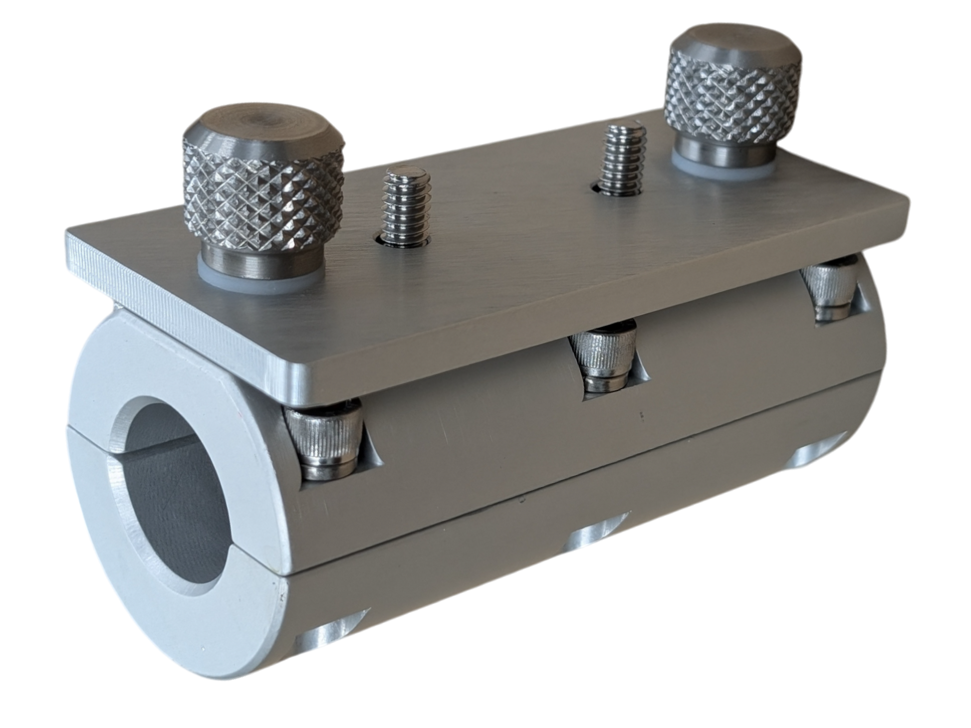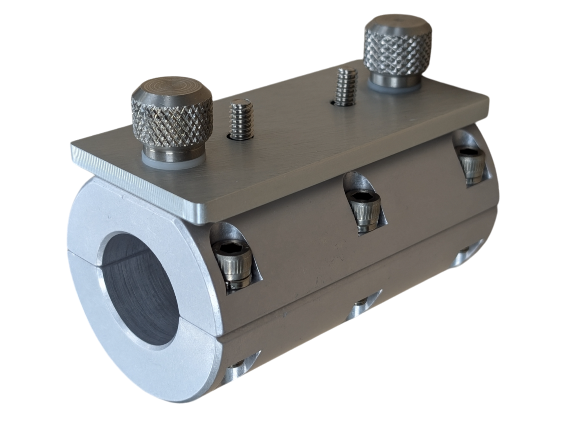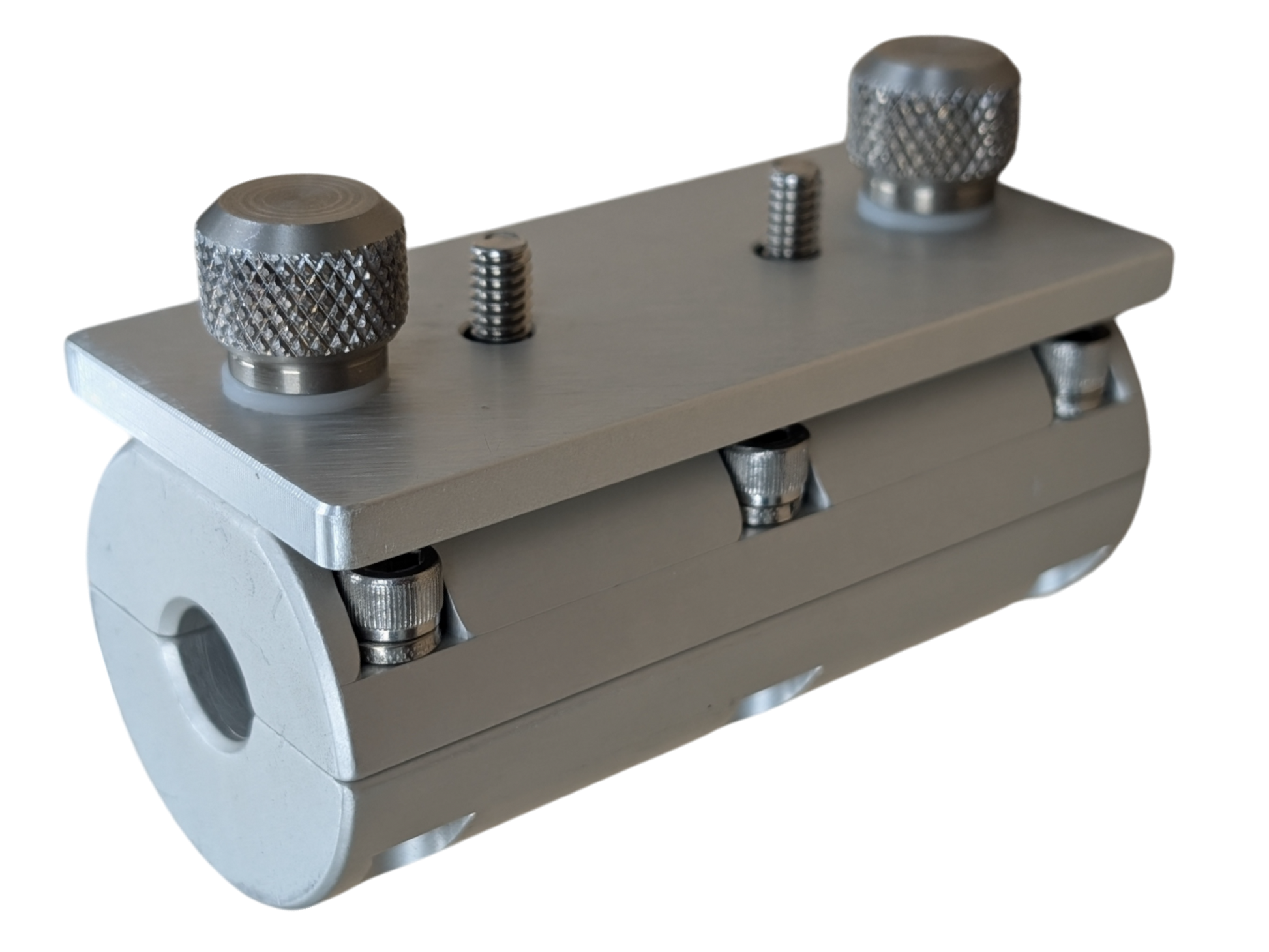 Our newly designed thumbscrew rail mount gives the user additional options than the rail mount described above. As shown to the right, the rod holder is attached to a top plate with two thumbscrews and can be attached/unattached leaving only the slim fitted mount attached to the rail.